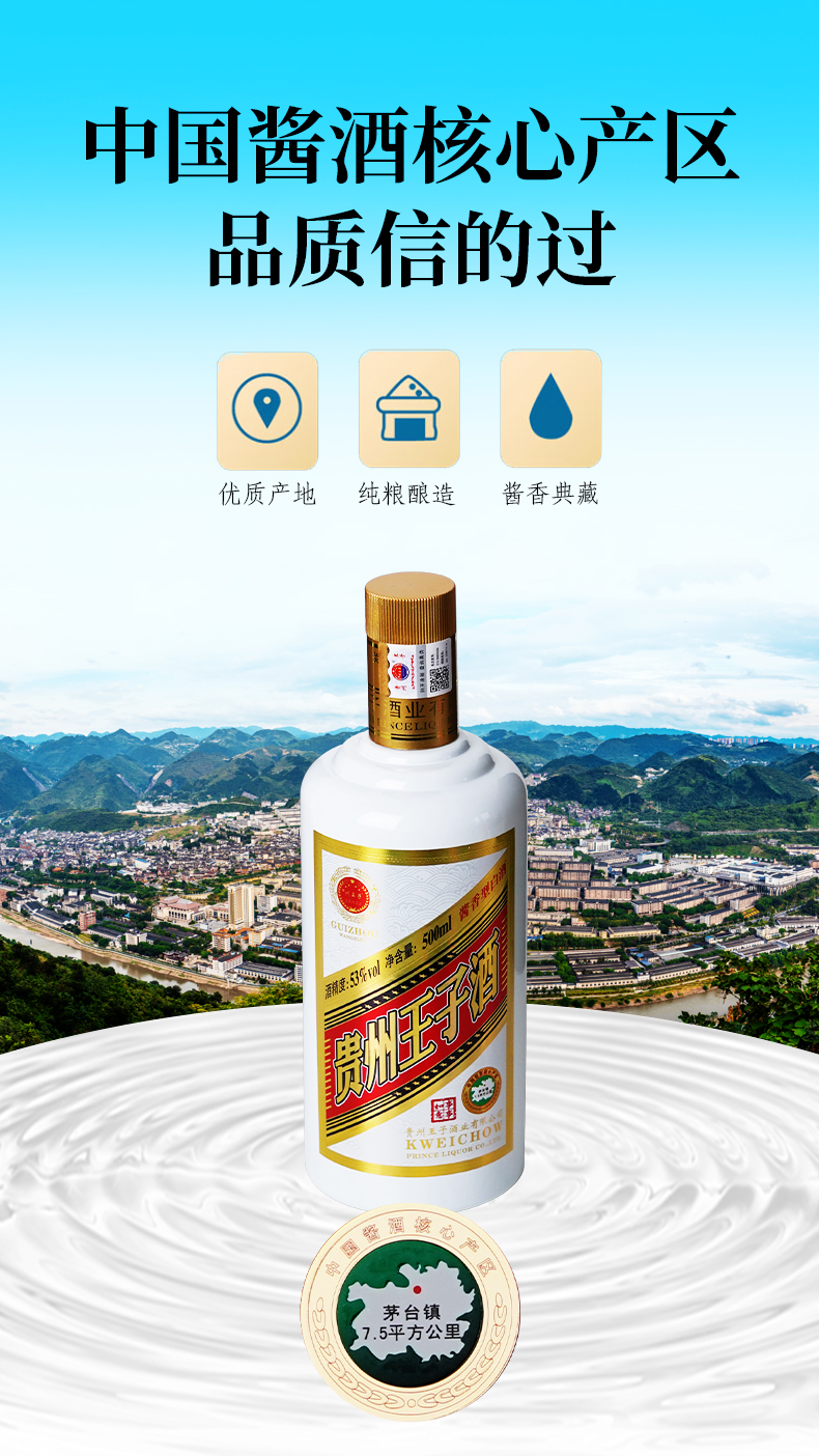 贵州王子酒业有限公司成立于2007年3月16,注册资本为3060万人民币,是贵州省仁怀市茅合酿酒(集团)有限责任公司旗下的子公司,坐落于环境优美的美酒河畔茅台镇。 茅合集团始建于一九八四年,至今有三十年的历史。公司继承传统工艺,依拓现代科技,不断开拓创新。经过三十年的艰苦创业,已发展成为占地面积5万多平方米,生产酱香型白酒8000多吨,拥有700多名职工的酿酒