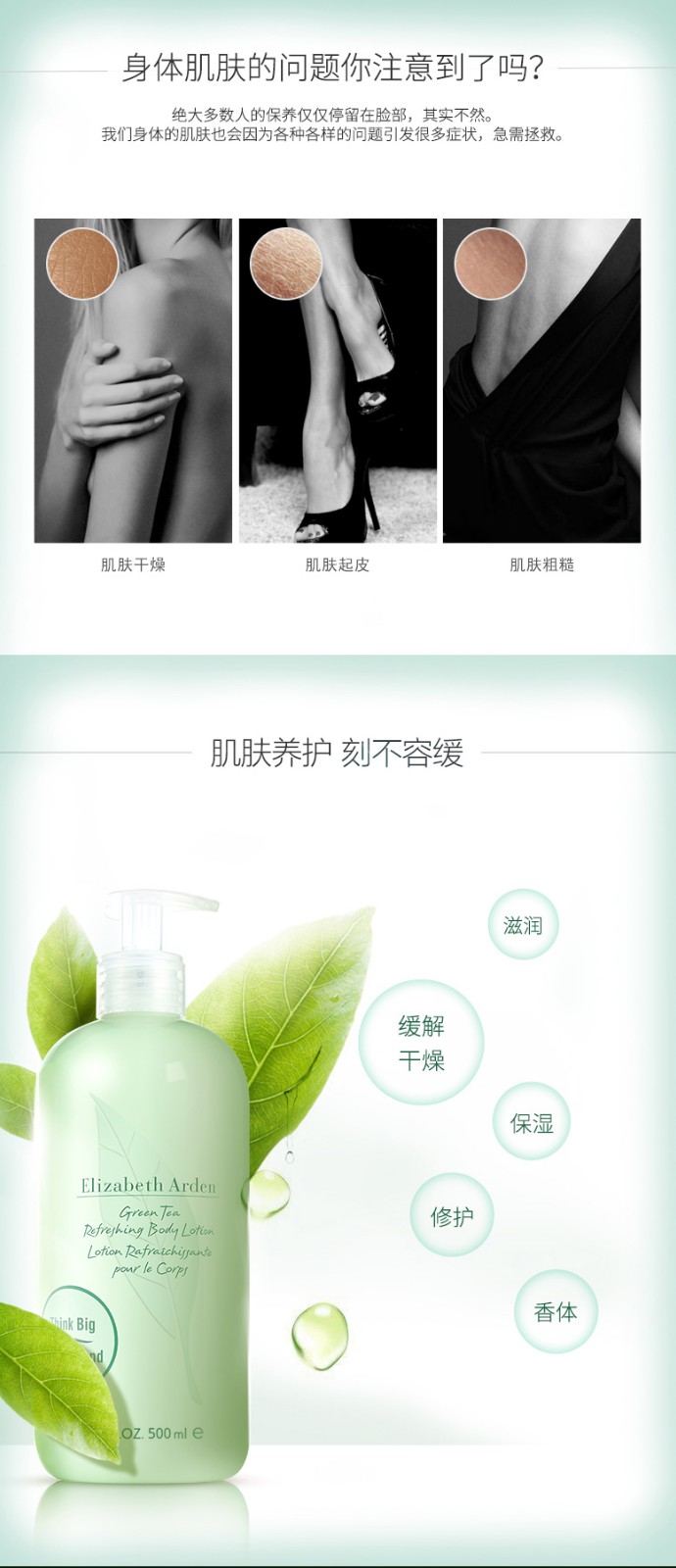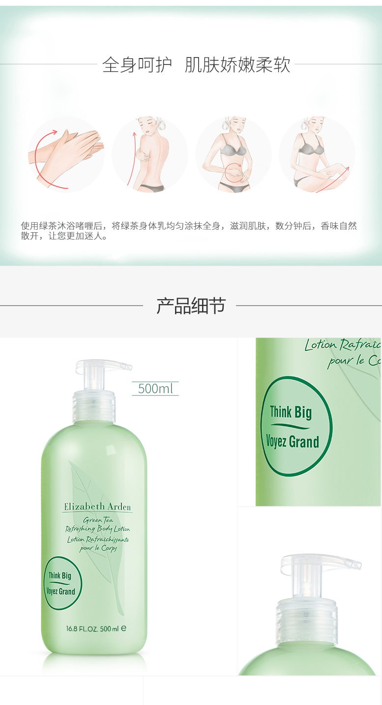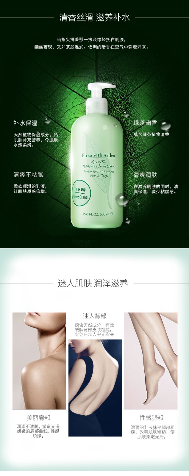 经典伊丽莎白雅顿绿茶香氛同系列身体乳上市,成为身体护理界一大“经典传奇”,每个身体乳榜单推荐上都少不了它的存在!润而不油质地+天然萃取的经典绿茶清香,让所有不安和疲惫烟消云散!“不足百元”亲民价格,买到500ml巨无霸身体乳+同名香水,让你省下一笔香氛钱!