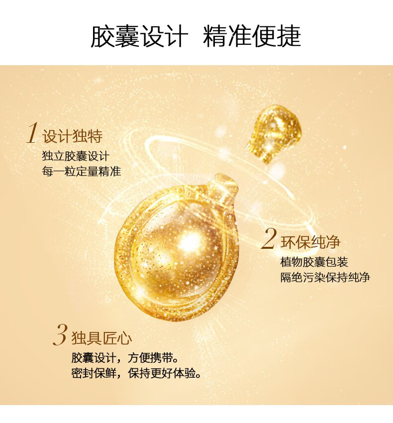 全新添加9大奢养成分,配合独立胶囊设计,非常卫生,一颗眼胶可以分成早晚两次使用,上眼刚开始有点油,但是吸收很快,特别滋润超大容量可以用很久,主打修复和紧致肌肤,每次一颗胶囊,正好够一张脸的用量,虽然是精华油但上脸秒吸收,配合按摩手法,整张脸立马变得细腻有弹性,第二天上妆超级贴服,坚持使用还可以修复红血丝和敏感这款精纯的超时空金致导航精华液,融合了CLX复合因子及其超导系统,可增强肌肤的保护屏障功能,使肌肤瞬间充盈,令肌肤健康有弹性。同时,这款精华液能激发肌肤本身的天然胶原蛋白,使肌肤更紧致,还能明显减少细纹与皱纹,令肌肤更光滑、更显年轻。主打修复和紧致肌肤,每次一颗胶囊,正好够一张脸的用量,虽然是精华油但上脸秒吸收,配合按摩手法,整张脸立马变得细腻有弹性,第二天上周超级服帖,它招牌的修护力果然很强大,坚持使用还可以修复红血丝