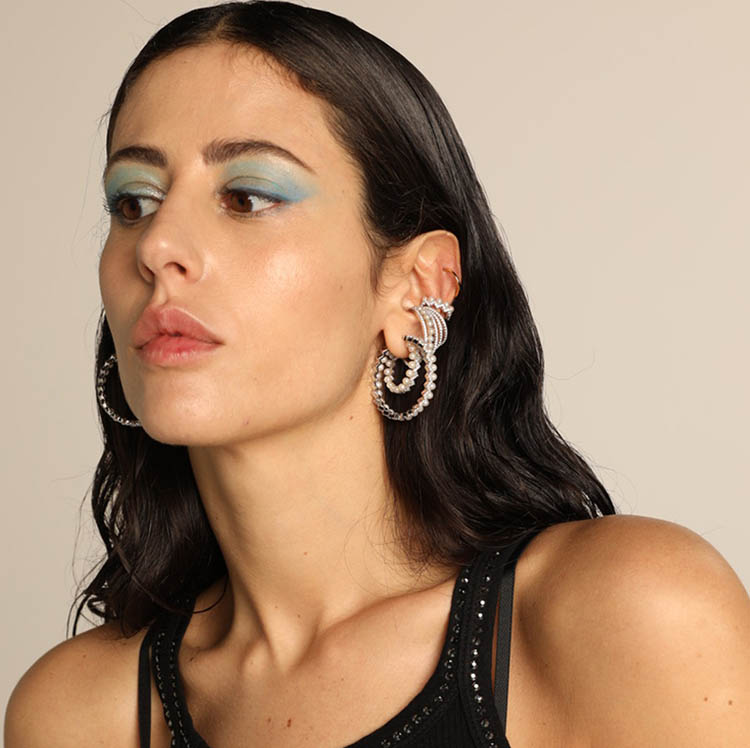 veecans环月月亮珍珠星芒耳钉气质百搭巴洛克耳环小众新款
