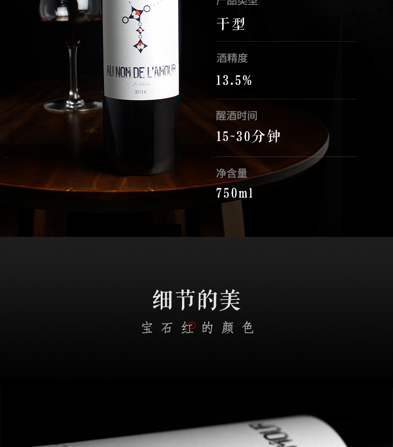 【中文标】法国 马勒农庄园爱的名义 干红葡萄酒750ml/支