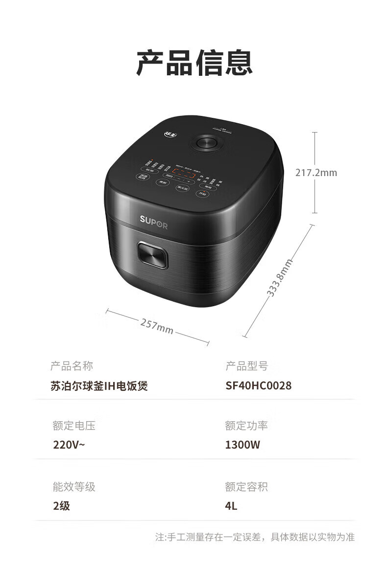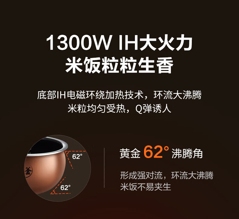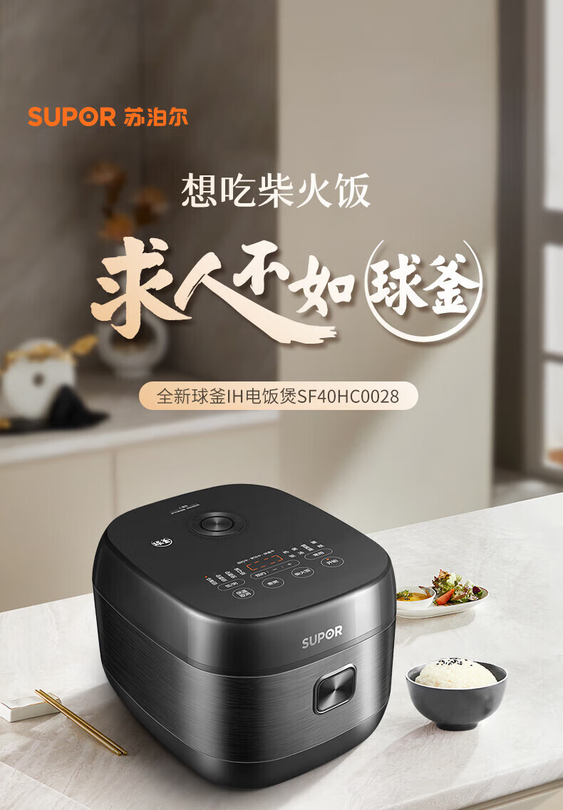 苏泊尔(SUPOR)电饭煲电饭锅IH电磁加热智能预约触摸操控精铁球釜内胆智能电饭煲SF40HC32