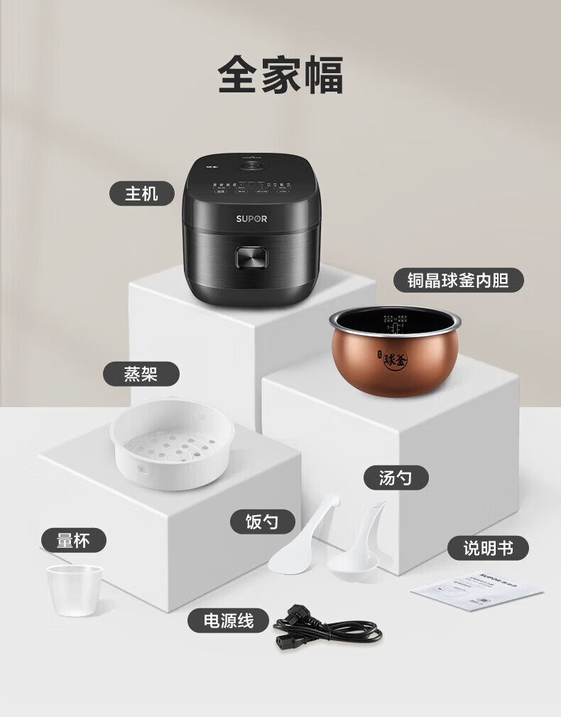 苏泊尔(SUPOR)ZMD安心系列 家用4L升多功能球釜内胆预约柴火饭智能电饭煲SF40HC66