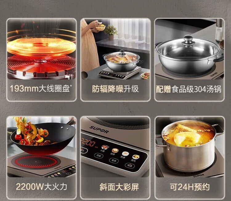 苏泊尔(SUPOR)电磁炉智能触控式电磁灶二级防辐射恒温联动火2200W大火力大功率 C22-ID31
