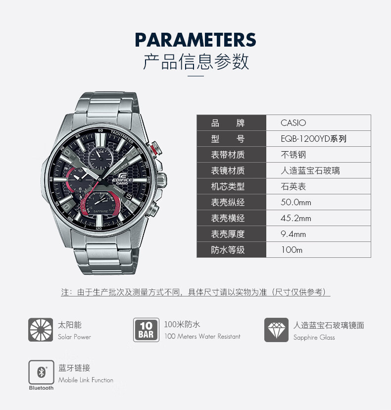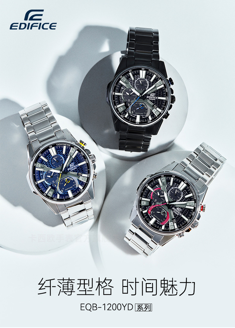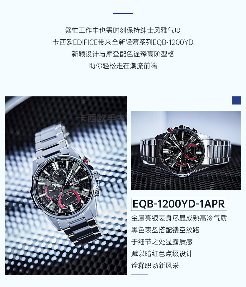 一般贸易 CASIO/卡西欧 黑盘金属带太阳能蓝牙男表 EQB-1200YDC-1APR