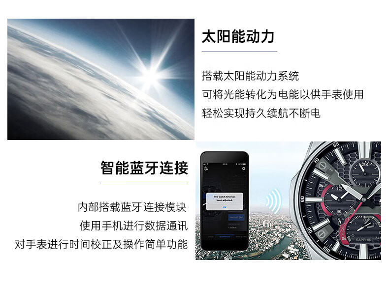 CASIO/卡西欧 黑盘金属带太阳能蓝牙男表 EQB-1200YDC-1APR