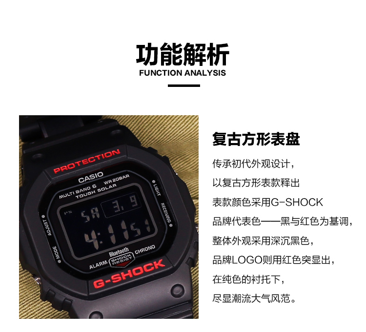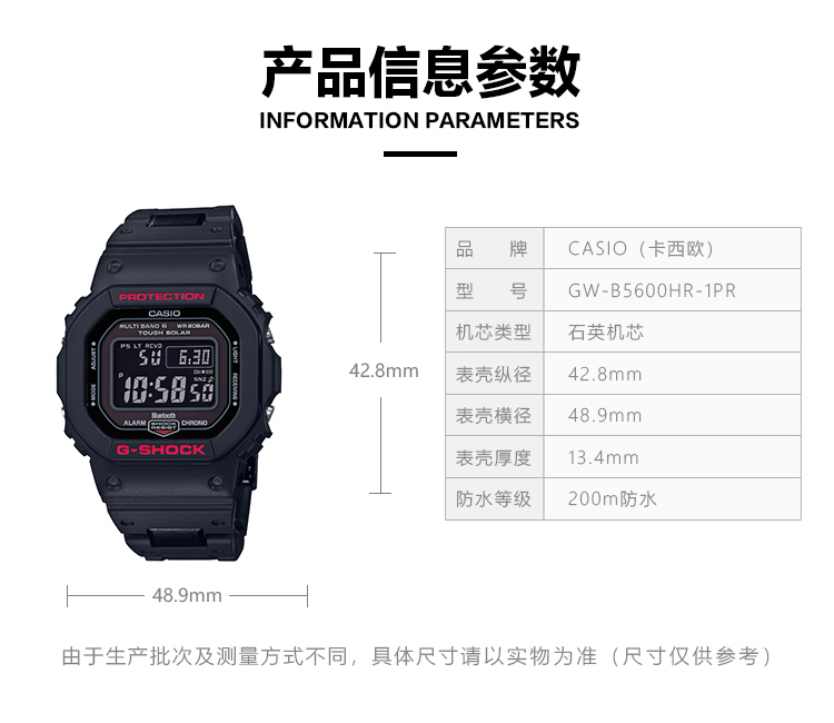一般贸易 卡西欧(CASIO)手表男士G-SHOCK经典小方块树脂系列运动电子表GW-B5600HR-1PR