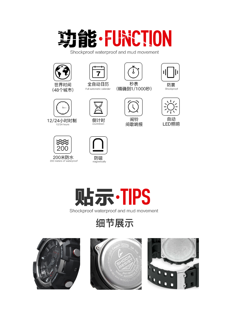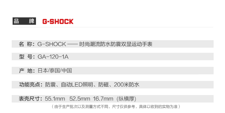 一般贸易 卡西欧(CASIO)手表男士G-SHOCK运动运动电子学韩表表520送男友GA-120-1A