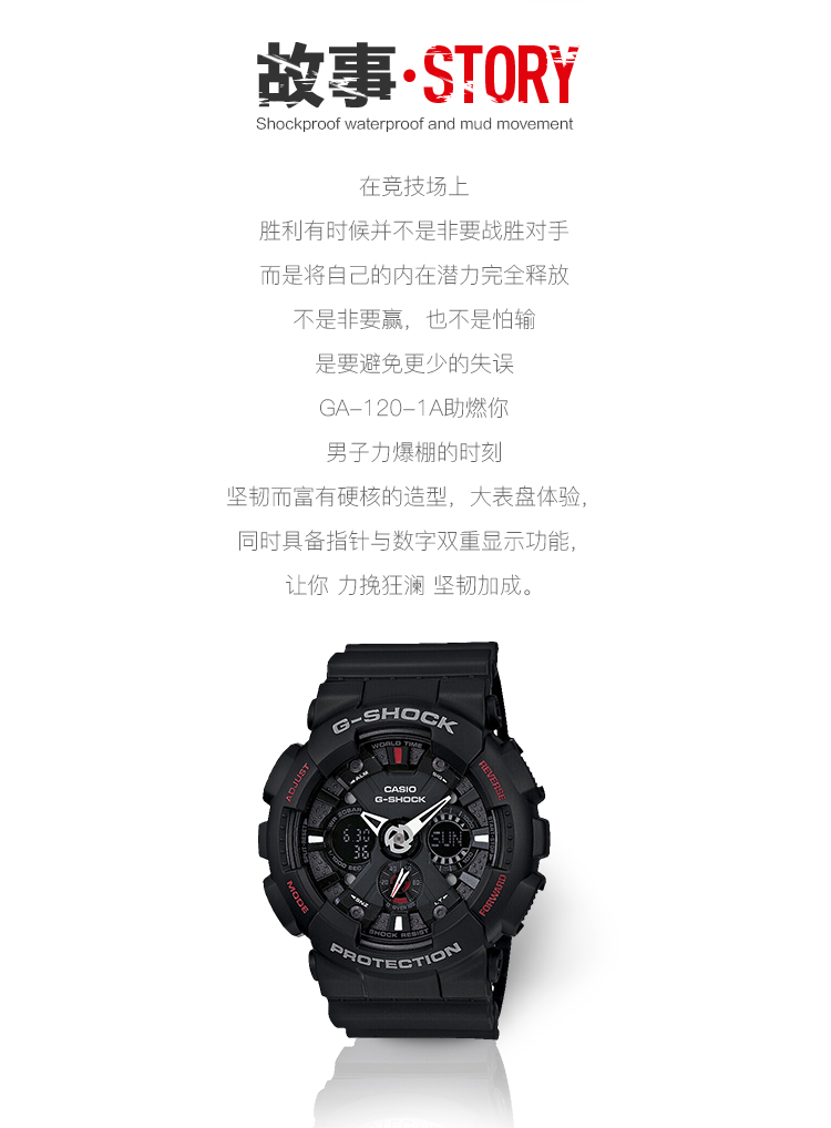 卡西欧(CASIO)手表男士G-SHOCK运动运动电子学韩表表520送男友GA-120-1A
