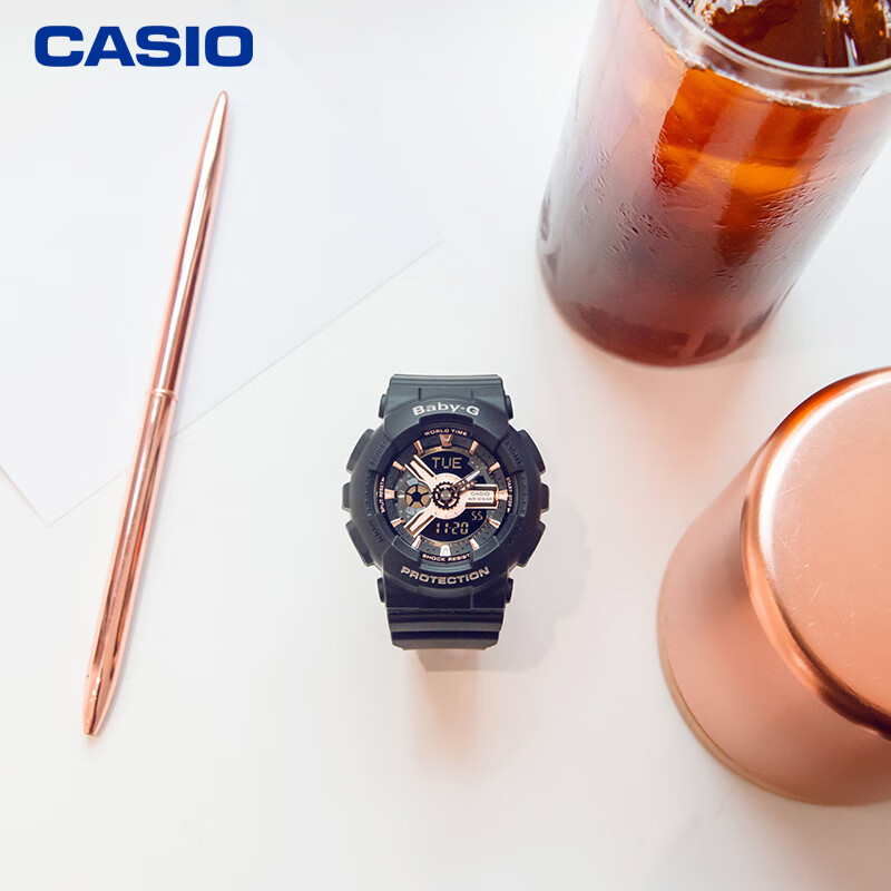 卡西欧(CASIO)手表女士BABY-G运动电子学韩表520送女友礼物BA-110RG-1A