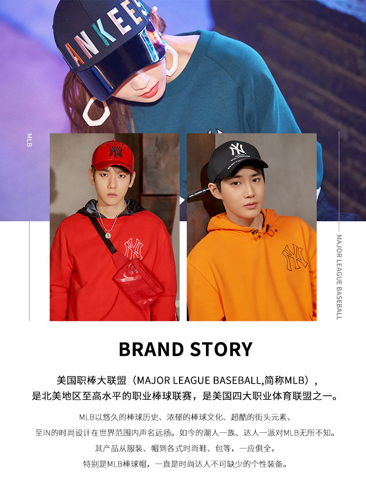 MLB诞生于1997年,以拥有150多年历史的美国职业棒球大联盟为创作蓝本,用复古印花图案作为灵感,创意呈现相关系列。MLB品牌以浓郁的棒球文化为背景,以美国街头时尚文化为元素,成为潮流运动领域的领导者——平均每6.3秒钟便售出一顶MLB CAP