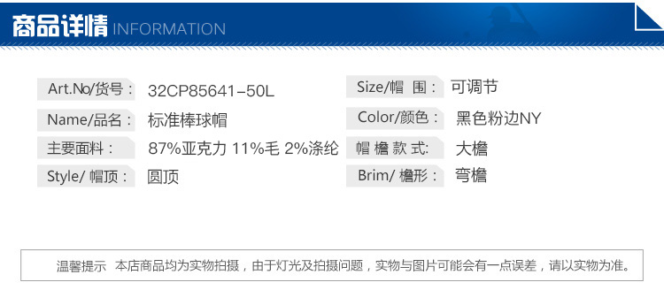 MLB美职棒棒球帽 白色黑色无侧标NY 32CPIF741-50W