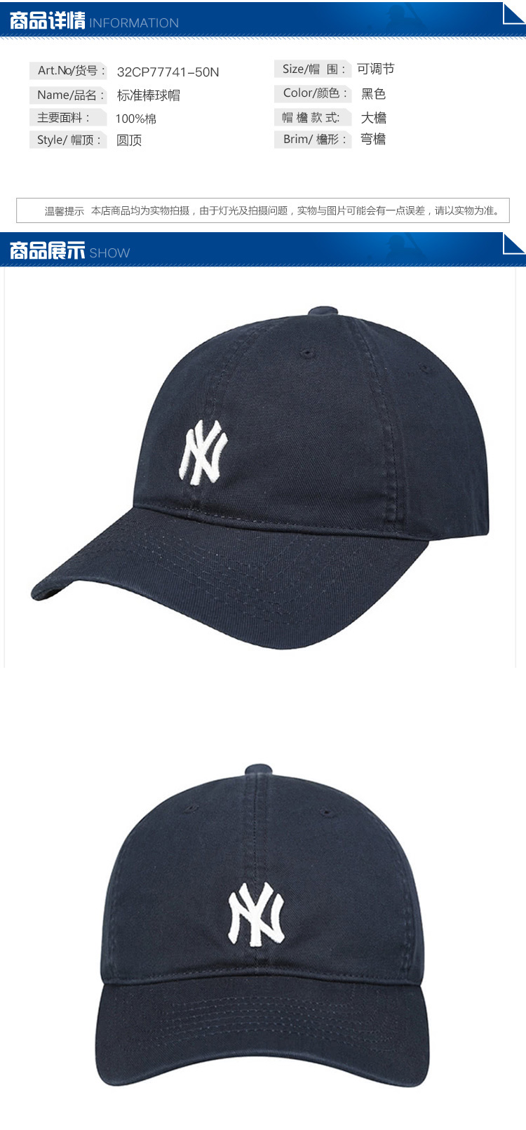 MLB男女帽新款复古LOGO休闲鸭舌帽运动帽NY棒球帽帽子32CP77841-50W
