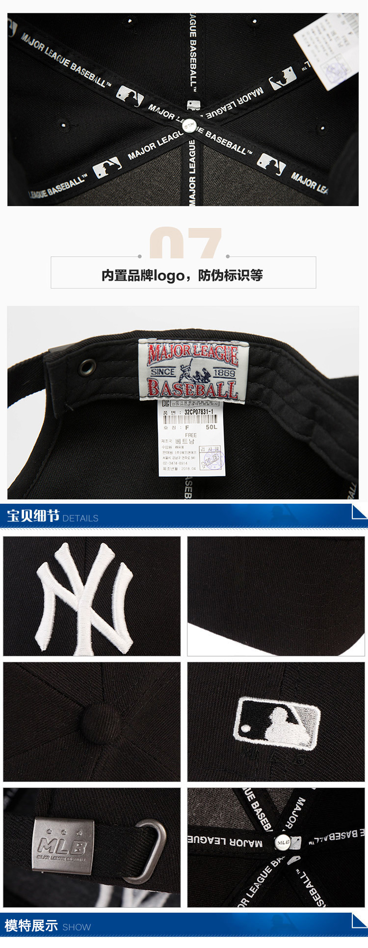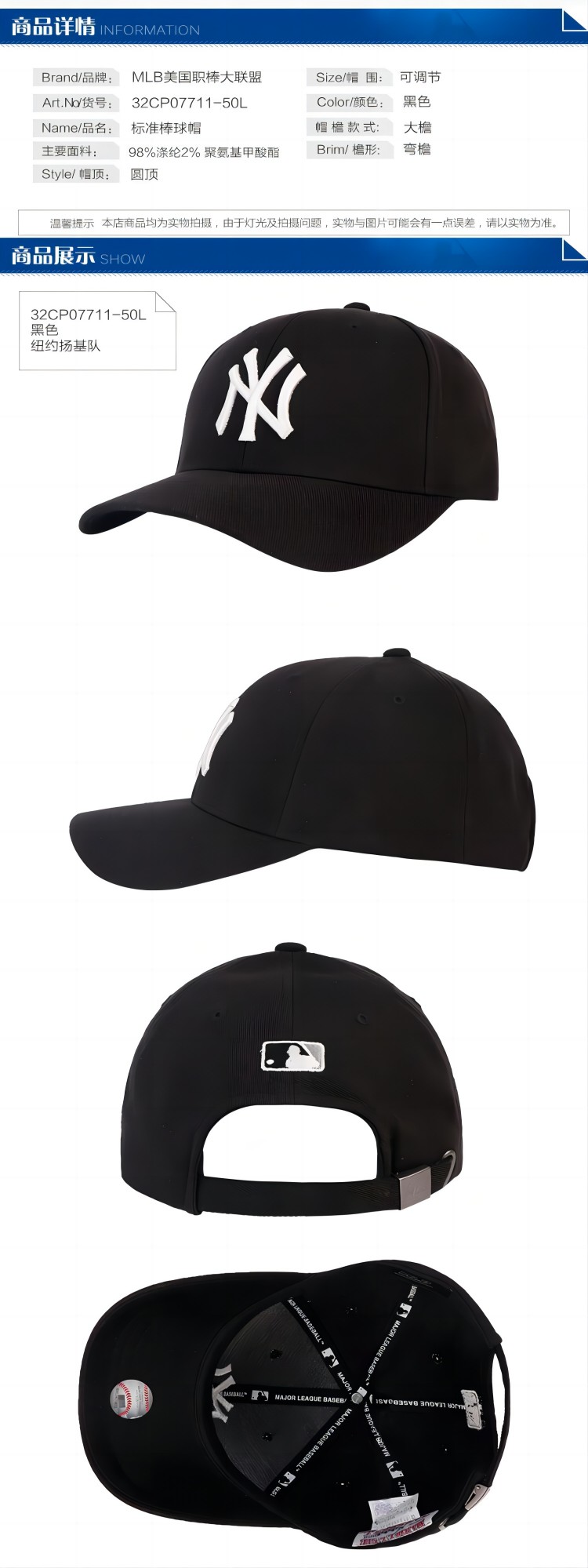 完税进口 MLB美职棒棒球帽 黑色白标无侧标NY 32CP07711-50L 棒球帽防晒遮阳帽