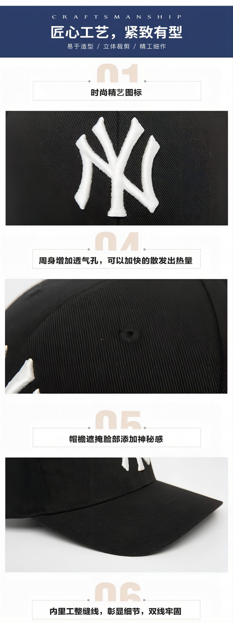 MLB美职棒棒球帽 黑色白标无侧标NY 32CP07711-50L 棒球帽防晒遮阳帽