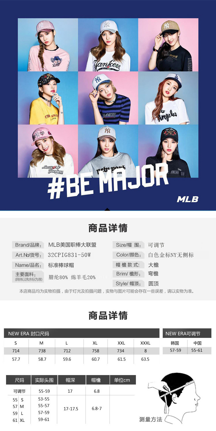 MLB帽子女男泫雅同款老花棒球帽运动帽男鸭舌帽32CPFB911-50I