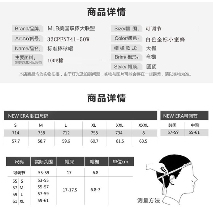 MLB男女帽新款复古LOGO休闲鸭舌帽运动帽NY棒球帽帽子32CP77841-50W