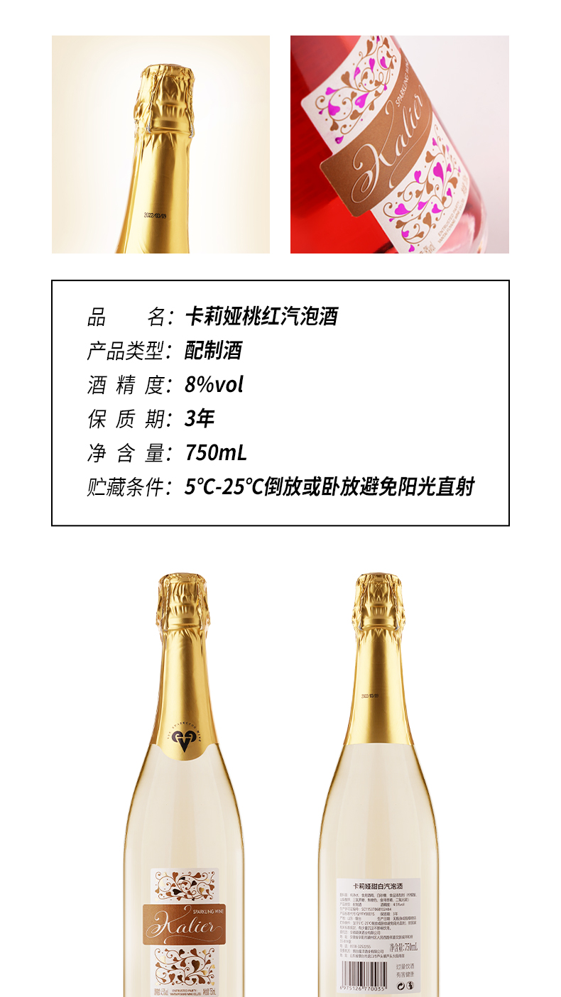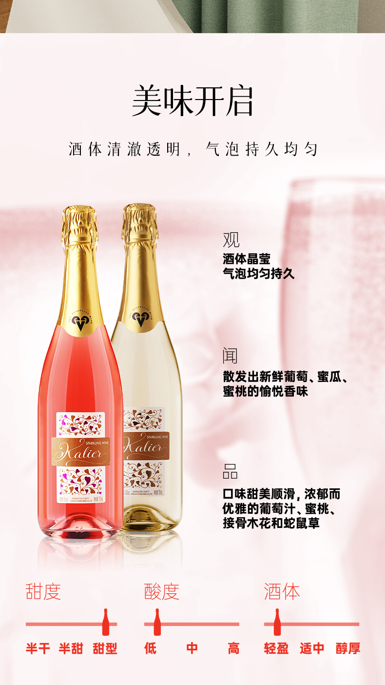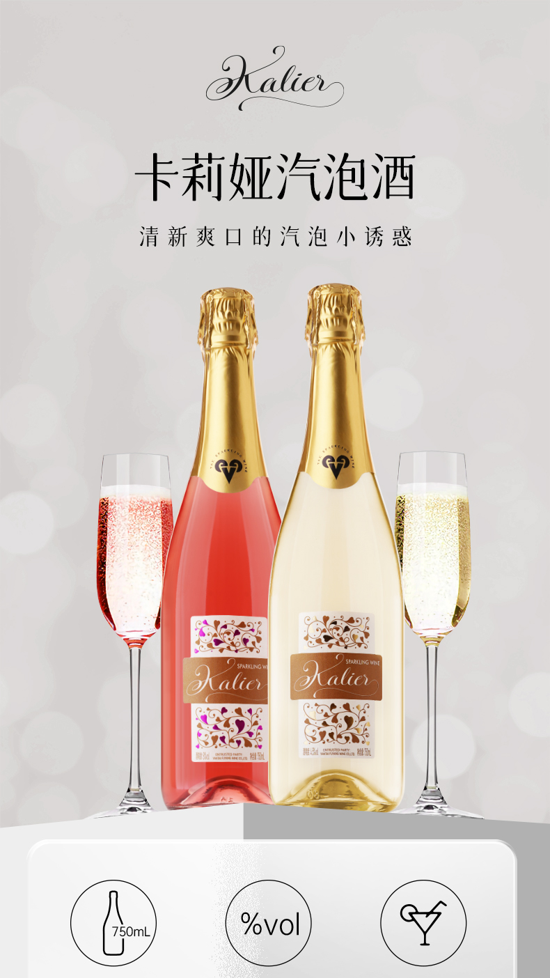 一般贸易 【赠香槟杯】卡莉娅桃红甜白低度微醺汽泡酒750ml/瓶 甜型配制酒组合