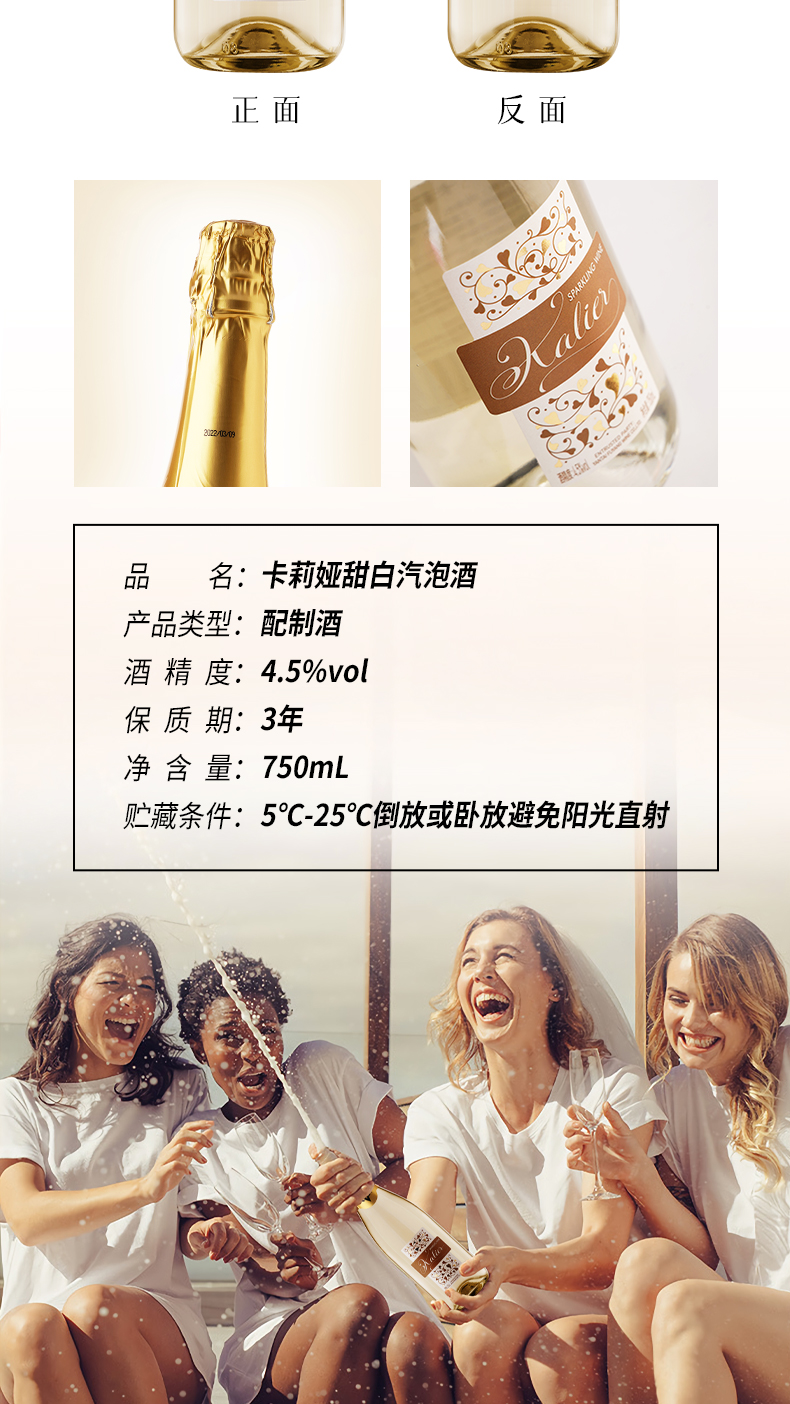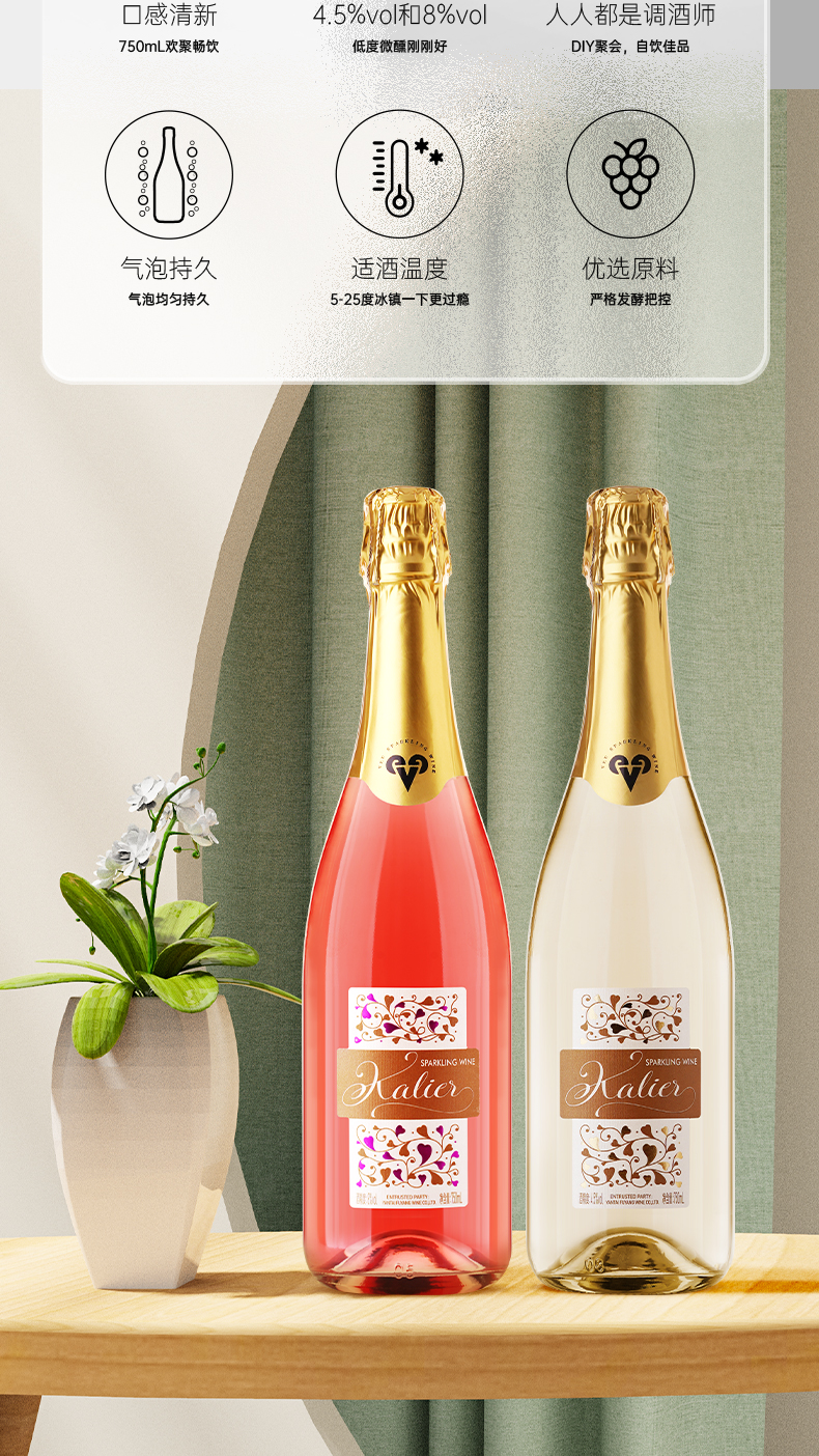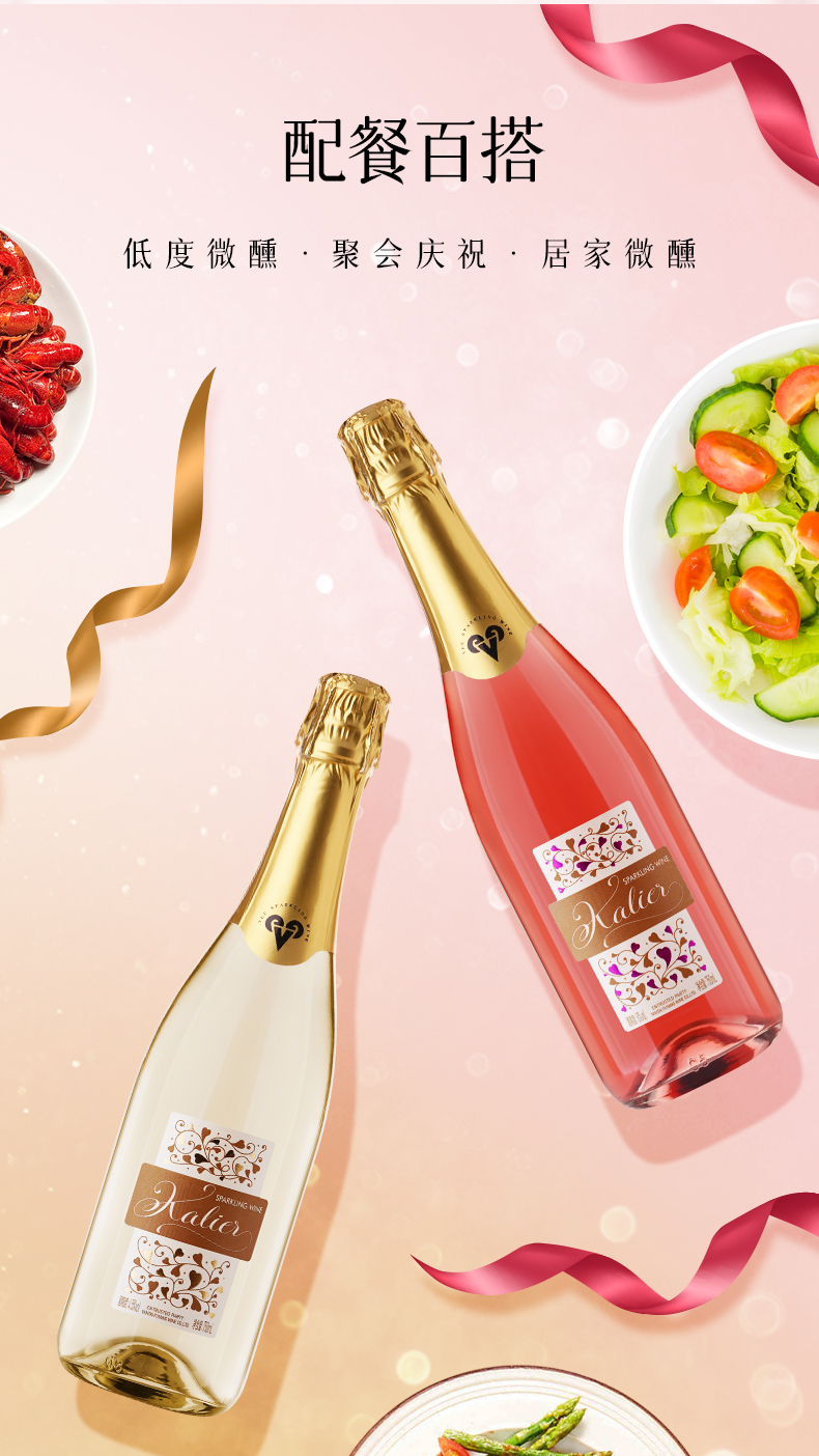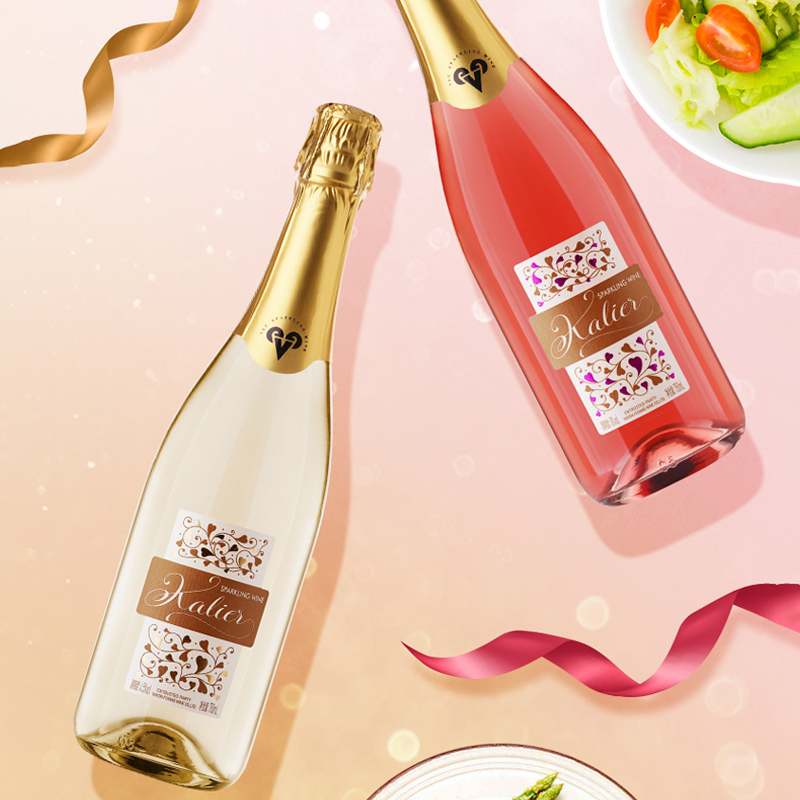 一般贸易 【赠香槟杯】卡莉娅桃红甜白低度微醺汽泡酒750ml/瓶 甜型配制酒组合