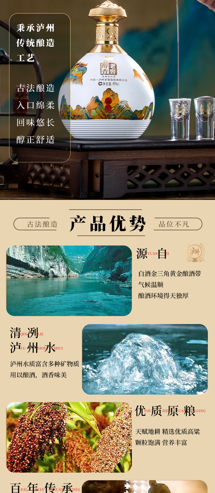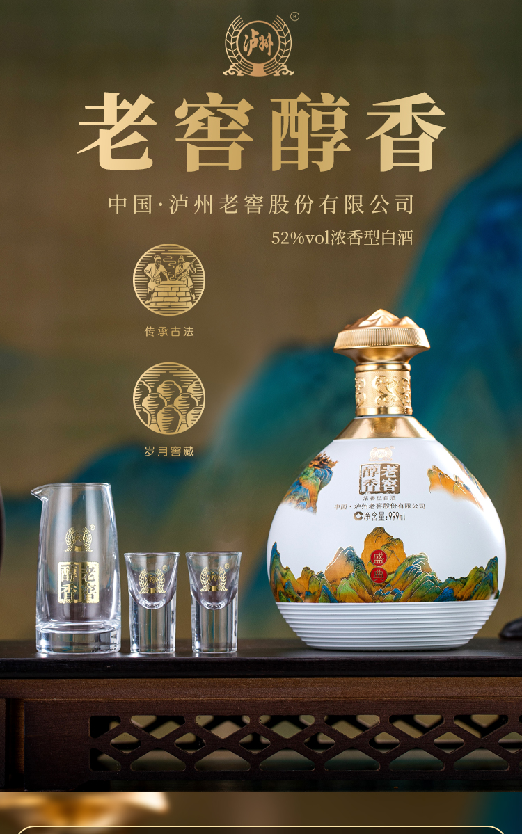泸州老窖金牌韵坛52度浓香型白酒999ml礼盒