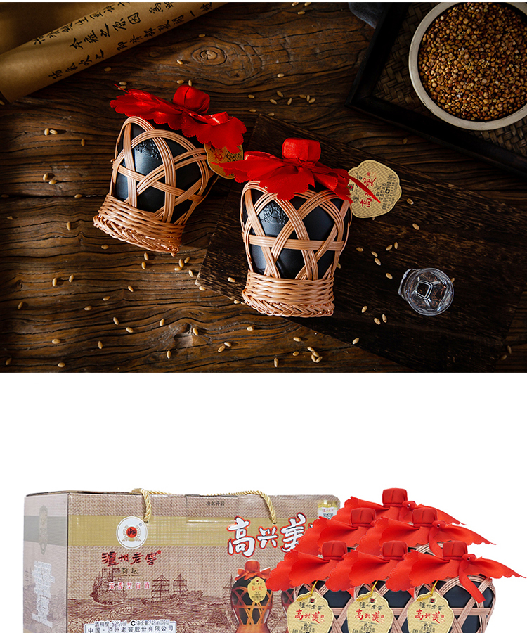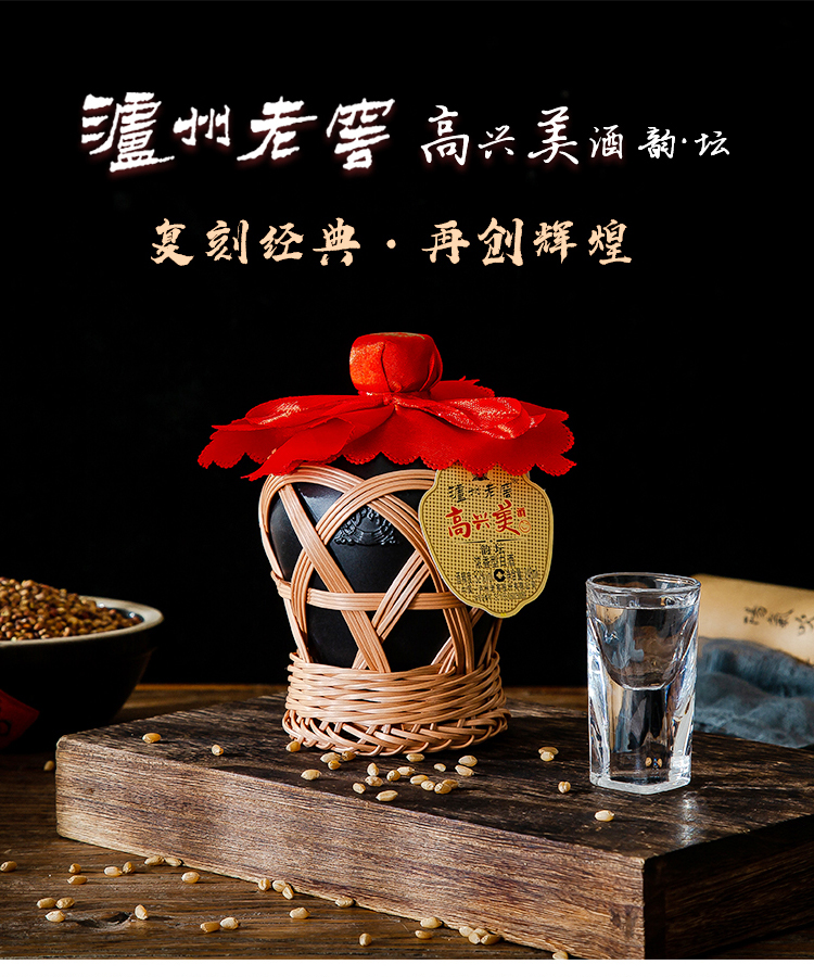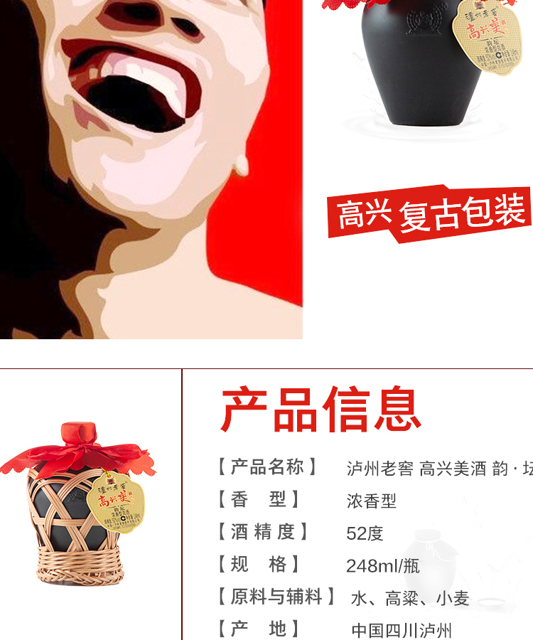 泸州(LUZHOU)老窖出品 浓香型固态法酿造纯粮白酒 送礼宴请 52度高兴美韵坛248ml*6