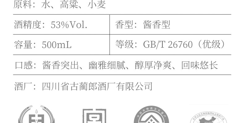 郎酒股份是以生产经营中国名酒“郎”牌系列酒为主营业务的大型现代化企业,公司现有员工2万人,20家全资及控股子公司。郎酒酿造历史悠久,自西汉的“枸酱”以来已有千年。新中国成立后,在周恩来总理亲切关怀下,郎酒于1957年在原产地四川省古蔺县二郎镇恢复生产。百年郎酒生生不息,千年工艺代代传承。现代郎酒已壮大为中国传统酱香型白酒生产企业,和茅台并为国家酱香型白酒标准制定者。迈入年销售200亿历史发展新阶段的郎酒,正沿着品质、品牌、品味的发展战略,坚定走一条独具