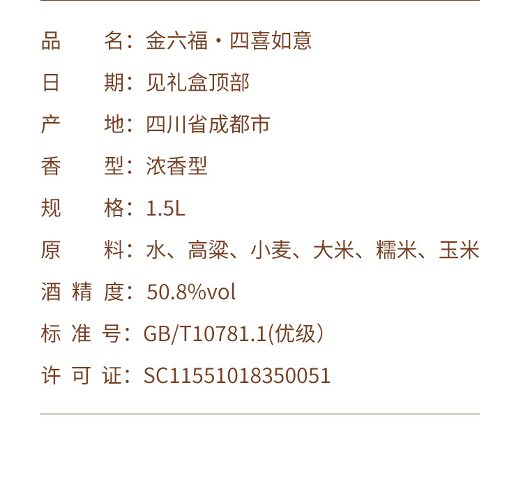 金六福是老百姓办喜事、团圆饭、走亲访友首选的白酒品牌是国内为数不多的真正具备高知名度、高美誉度、高联想度的高价值品牌。2022年,经权威机构认证
