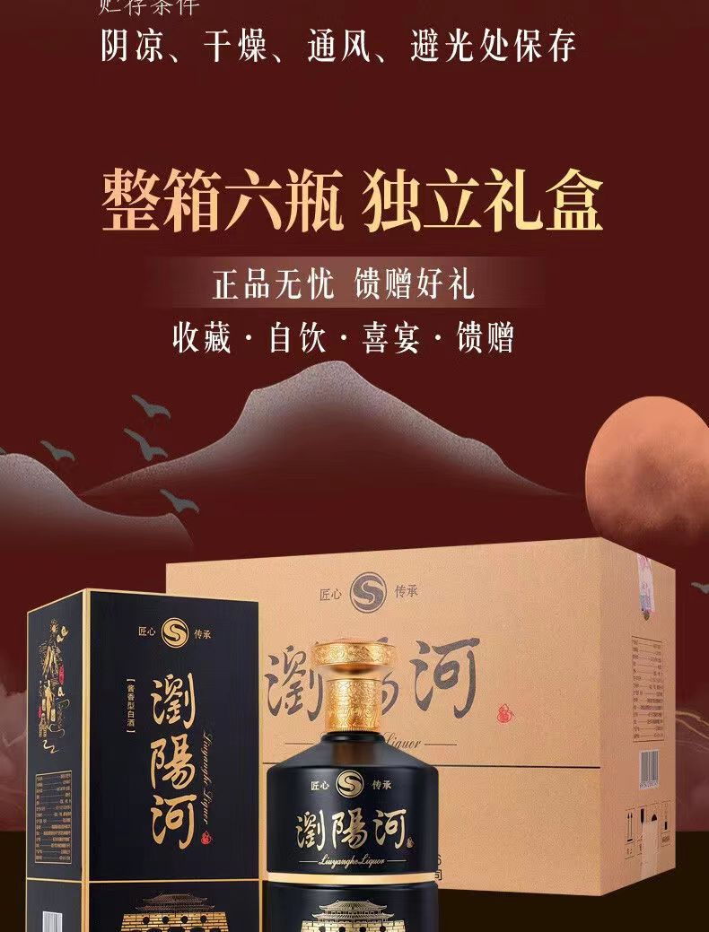 泸州老窖蓝花瓷版头曲酒柔和酒500ml*6瓶整箱装(配3个礼品袋)