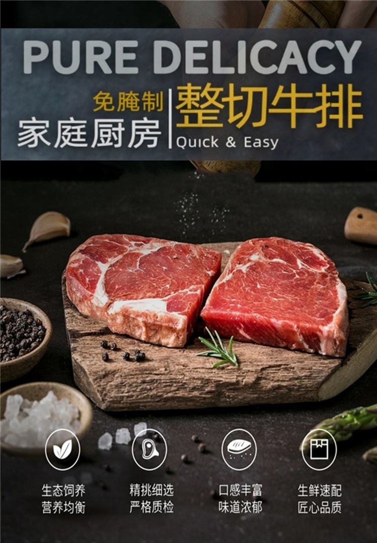 原肉整切菲力牛排150克+送牛排酱 微腌制牛扒家庭装