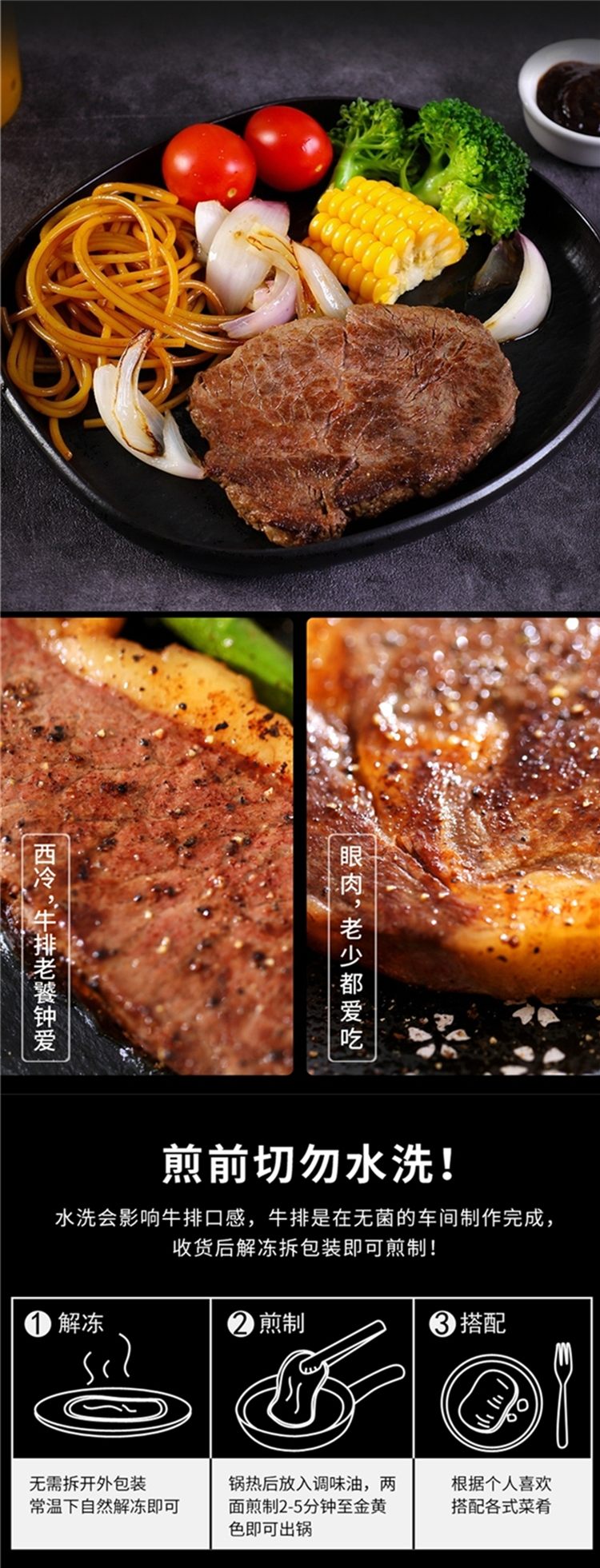 原肉整切西冷牛排180克+送牛排酱 微腌制牛扒家庭装