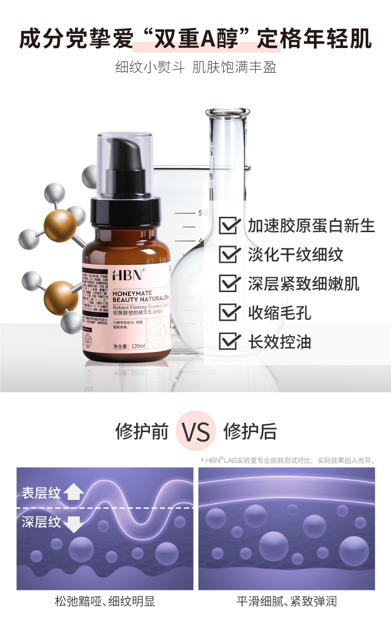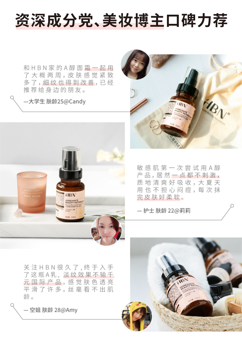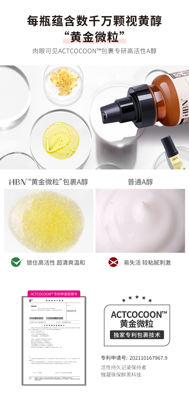 HBN品牌创立于2019年,是深圳市护家科技有限公司旗下主打功效护肤品牌,作为国货"A醇”抗老的开拓者和引领者,“拥有看得见效果”的创新理念,打造极致功效抗老护肤品,要让用户把每一分钱都只花在"有效成分”