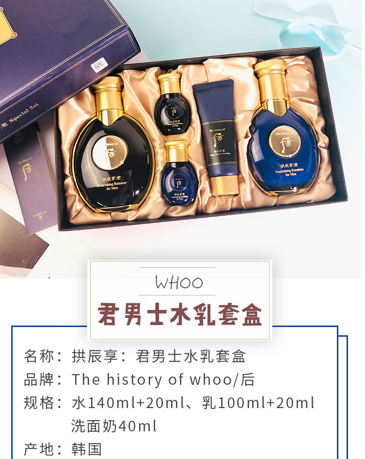 LG集团子公司LG生活健康旗下的化妆品品牌。品牌于2003韩国上市,The History Of Whoo后,意为皇后的秘诀。其将《东医宝鉴》、《本草纲目》等传世医典中记载的皇后养颜秘方,萃取稀缺名贵的韩方药材,结合现代护肤科技,一经推出,让广大的韩国女性为之疯狂与倾心。“WHOO后”坚持对高品位、高格调之美的追求,并以此作为品牌价值与理念。如今,WHOO后成为深受东方女性追捧的韩国奢华宫廷护肤名品。
