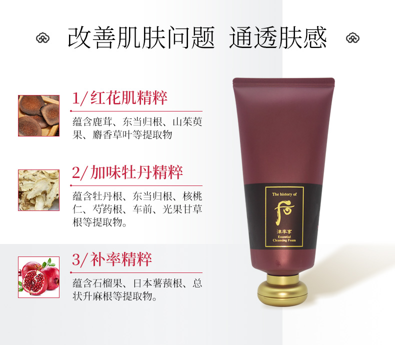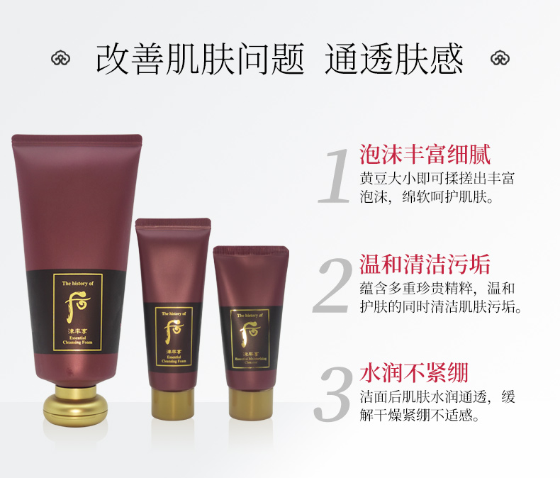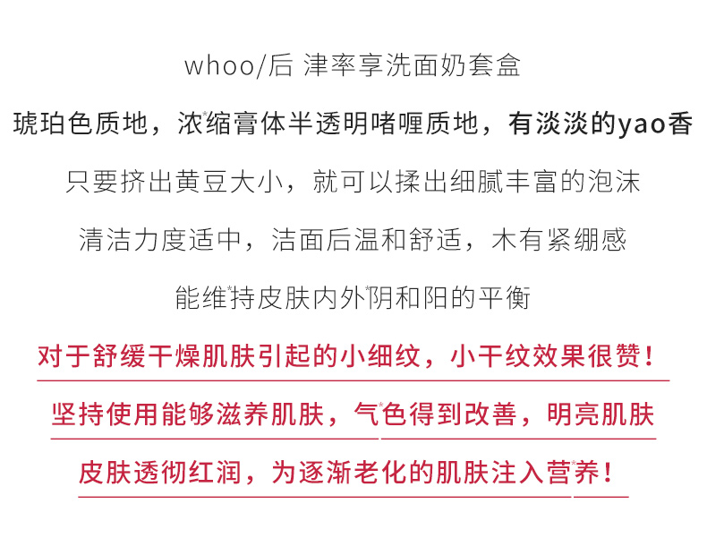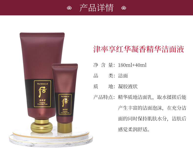 韩国 Whoo 后 津率享 红华凝香洗面奶套盒 洗面奶180ml+洗面奶40ml+卸妆30ml
