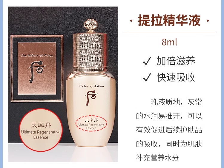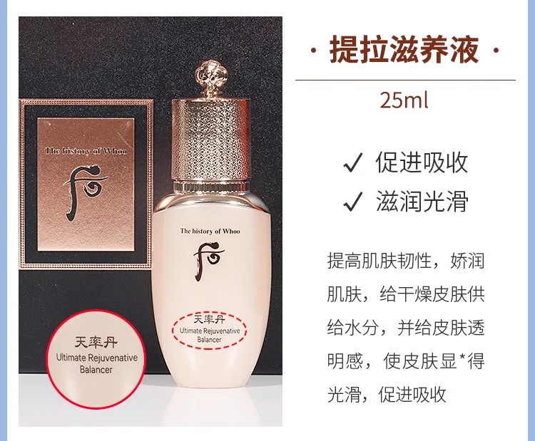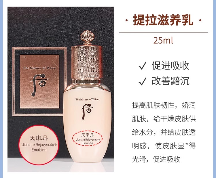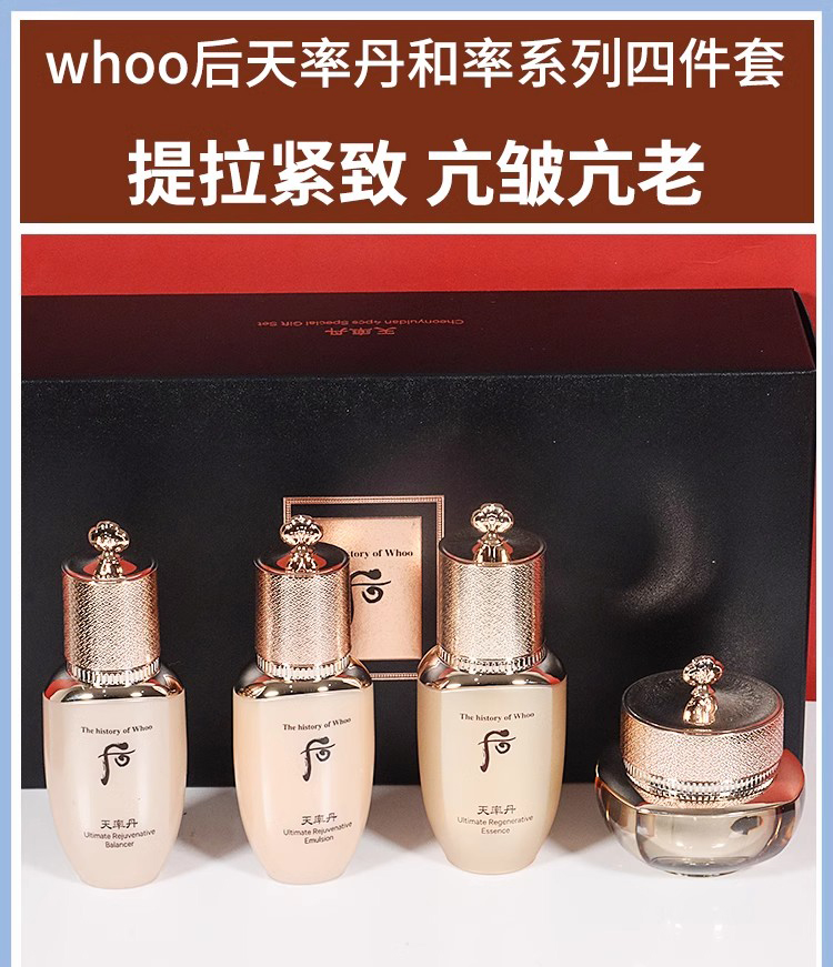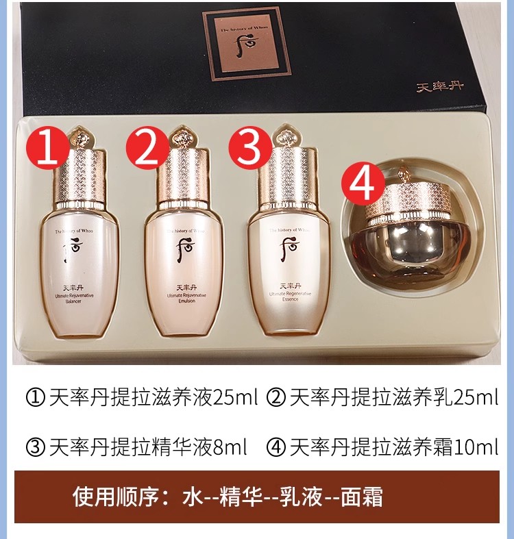 韩国后WHOO天率丹中样四件套 非卖品 水25ml+ 乳25Mml+精华8ml+ 面霜10ml