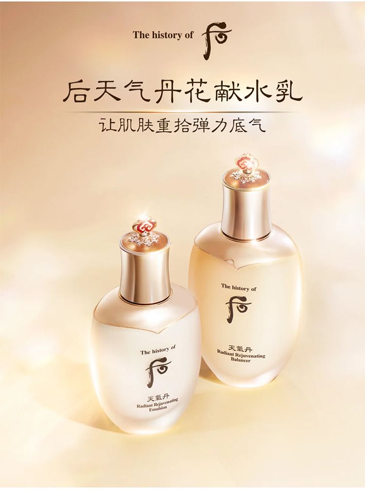 LG集团子公司LG生活健康旗下的化妆品品牌。品牌于2003韩国上市,The History Of Whoo后,意为皇后的秘诀。其将《东医宝鉴》、《本草纲目》等传世医典中记载的皇后养颜秘方,萃取稀缺名贵的韩方药材,结合现代护肤科技,一经推出,让广大的韩国女性为之疯狂与倾心。“WHOO后”坚持对高品位、高格调之美的追求,并以此作为品牌价值与理念。如今,WHOO后成为深受东方女性追捧的韩国奢华宫廷护肤名品。