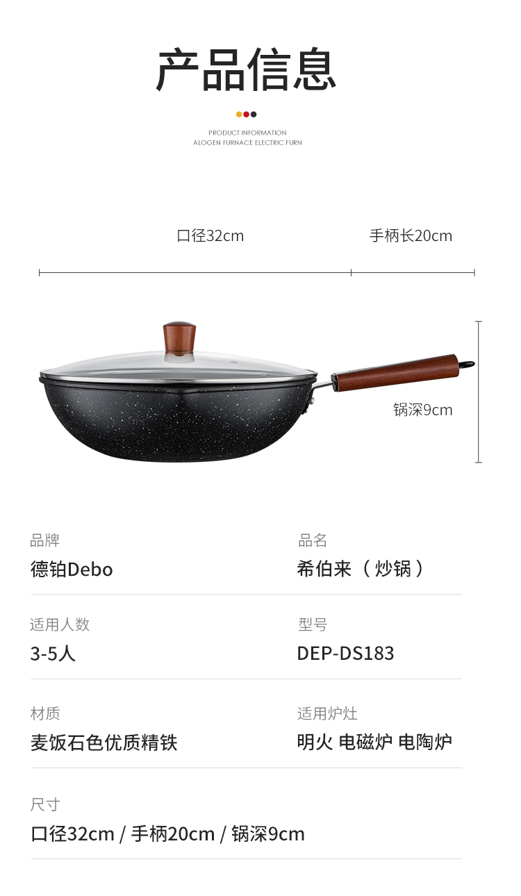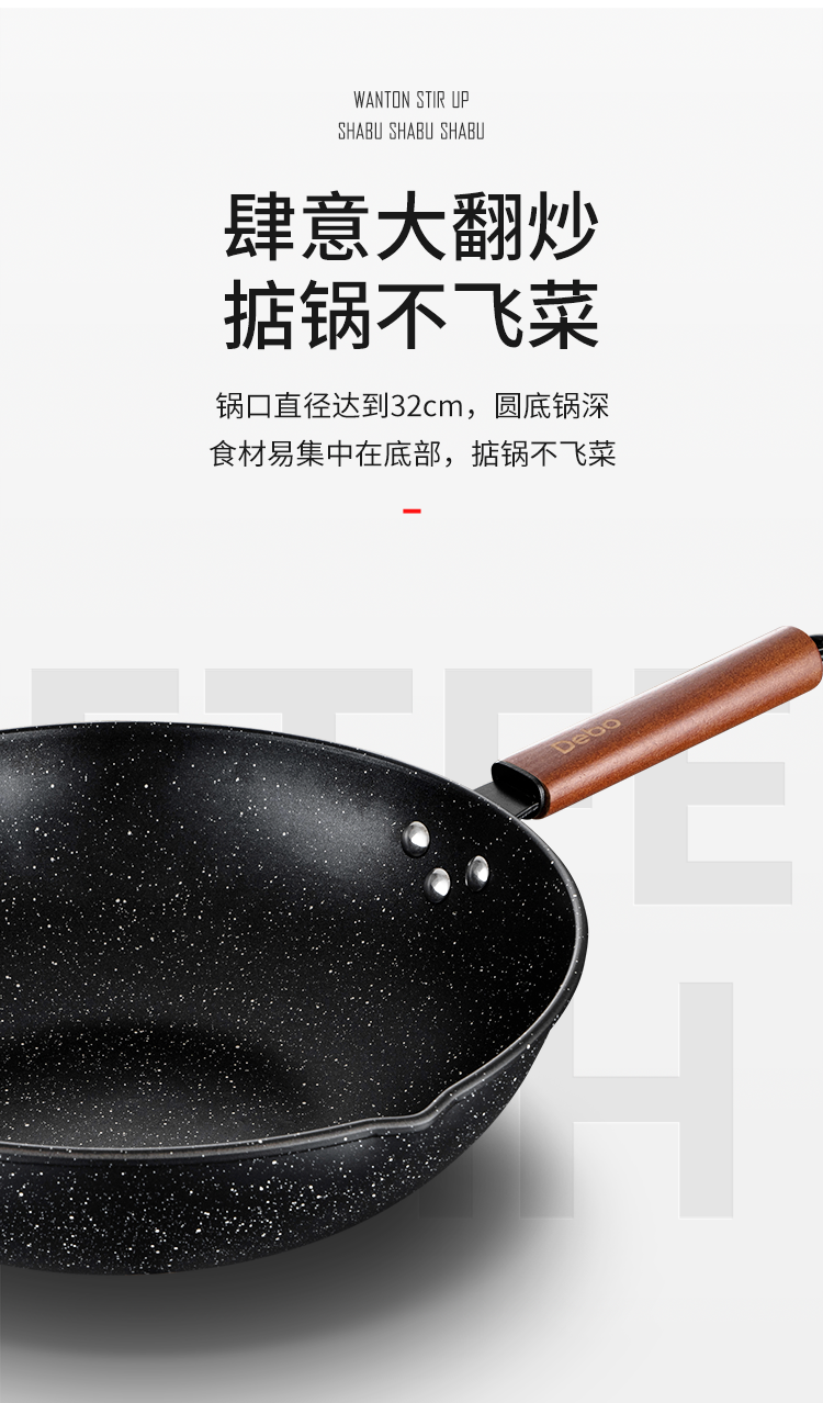 【新品】德铂debo 24CM欧岱拉无涂层炒锅炒菜锅 无涂层 精巧加深