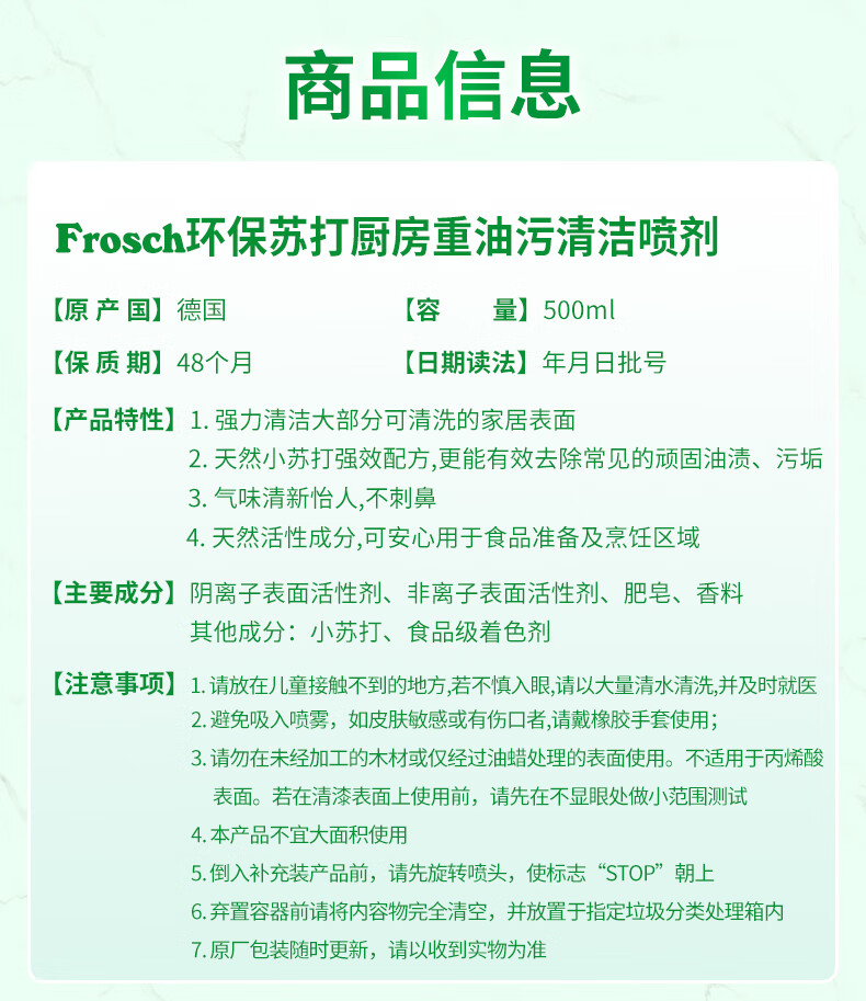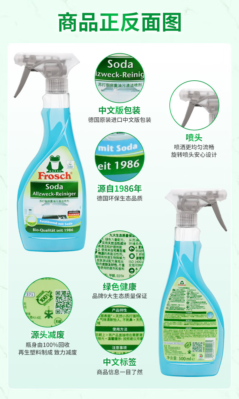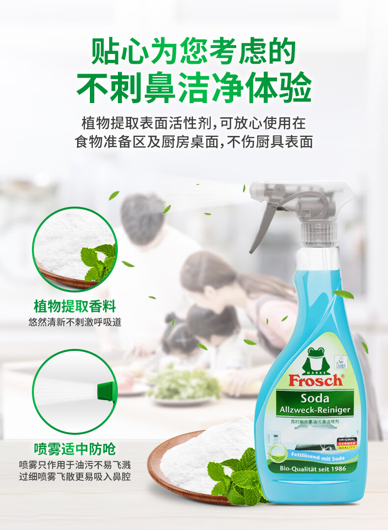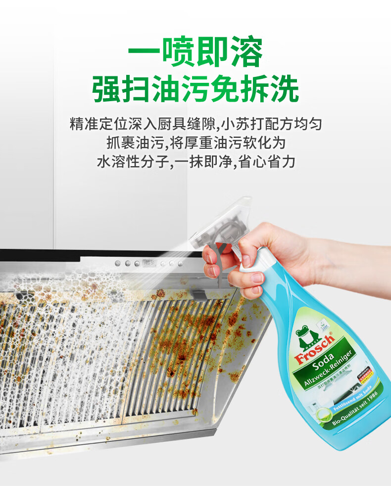 Frosch苏打厨房重油污清洁喷剂500ml 高效去污 烤箱清洗 德国原装进口