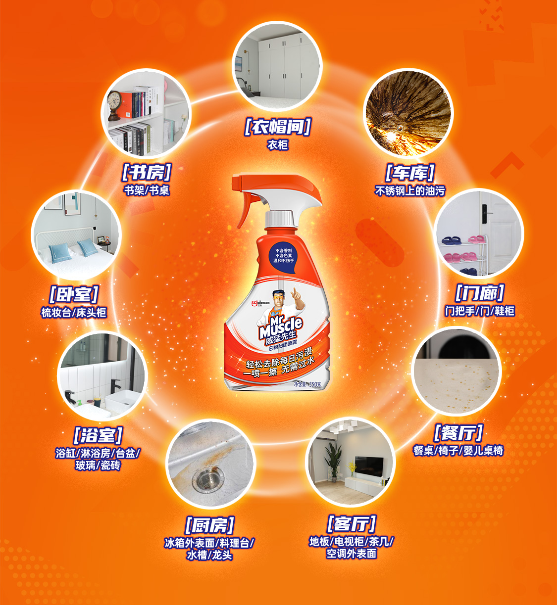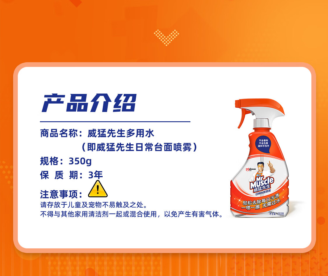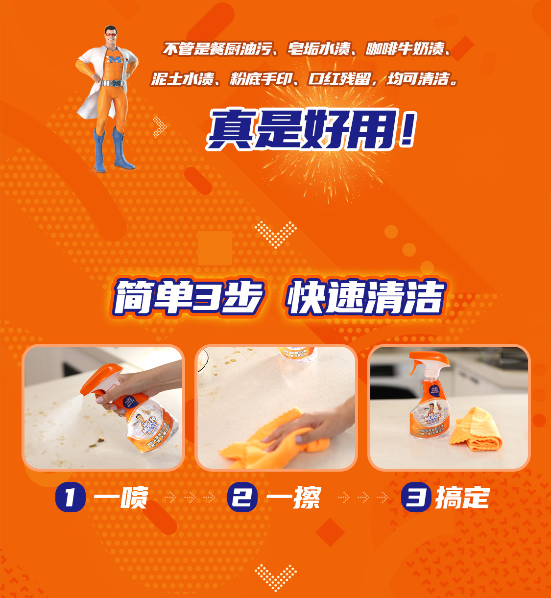 威猛先生(Mr Muscle) 油污清洁剂 350g 日常台面喷雾 强力去油污 厨房清洁剂