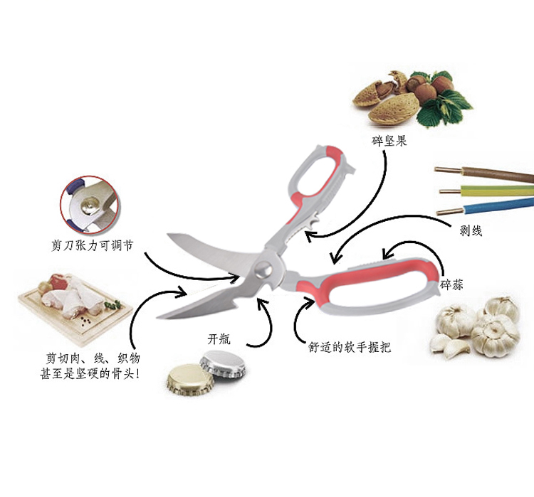 邝一刀大红色家庭7件套刀(女士刀+家庭套刀+切片刀+水果刀+厨师刀+刮皮刀+多功能剪刀)
