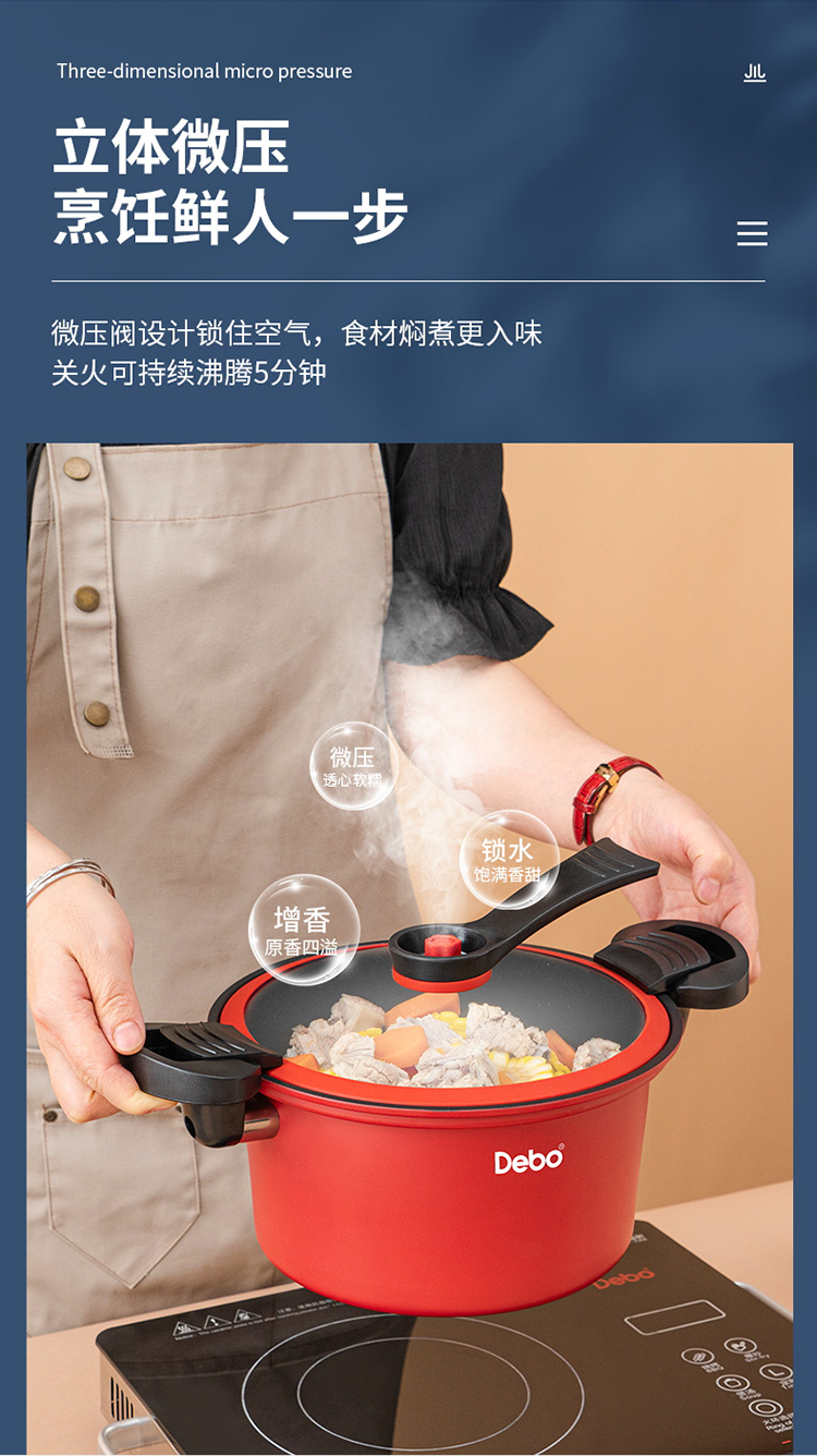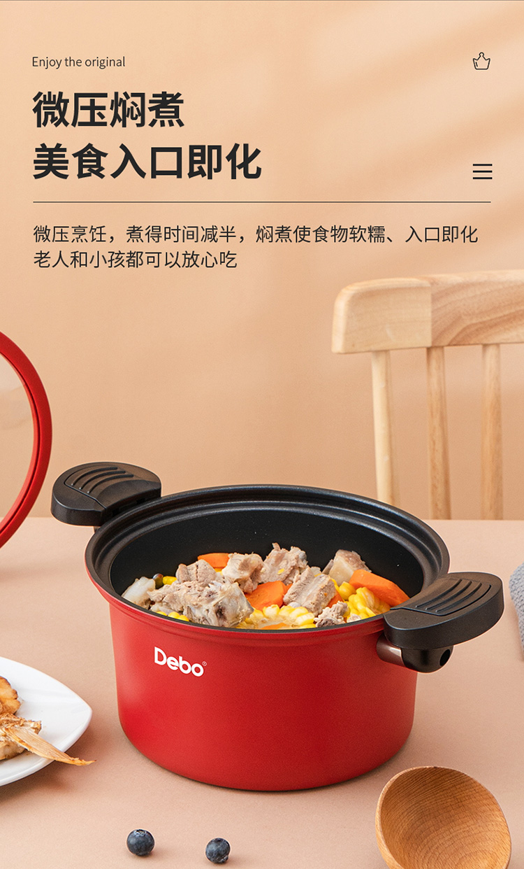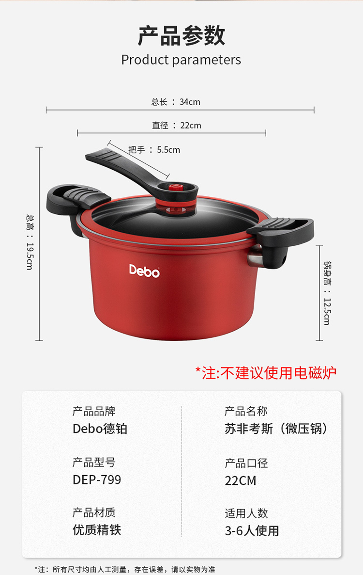 德国Debo德铂希伯来麦饭石色不粘锅少油烟带盖复合锅底明火电磁炉通用32cm