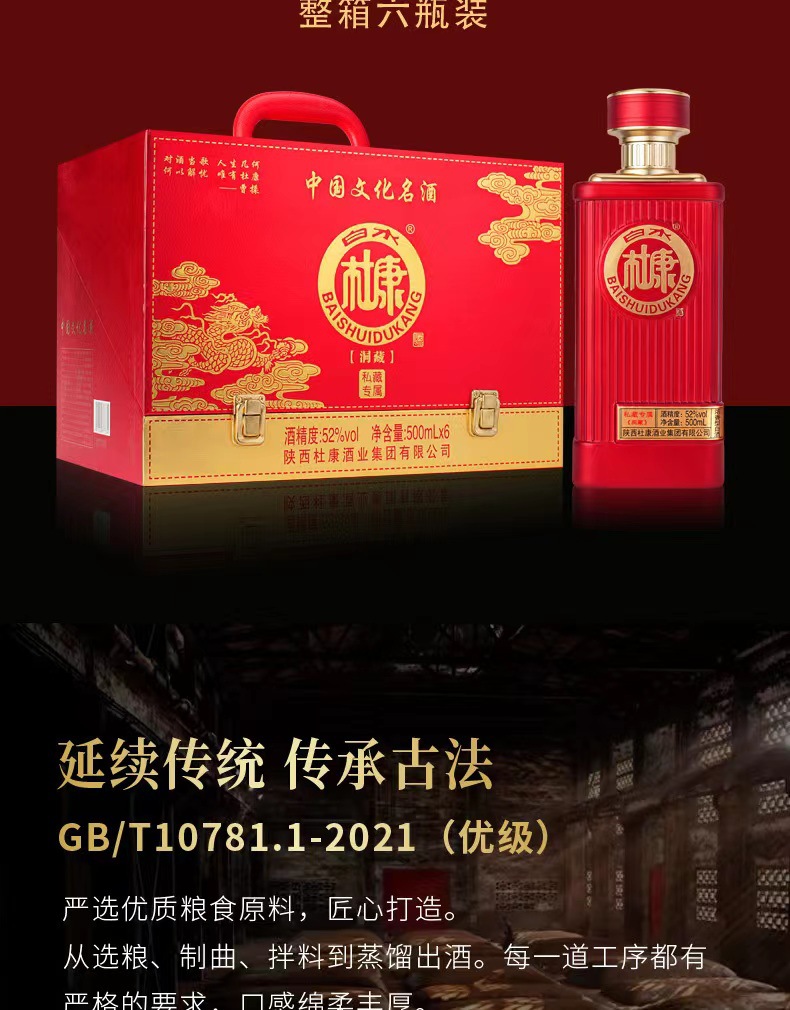 【鸿运当头】白水杜康私藏专属52度浓香型白酒500mL*6瓶礼盒装