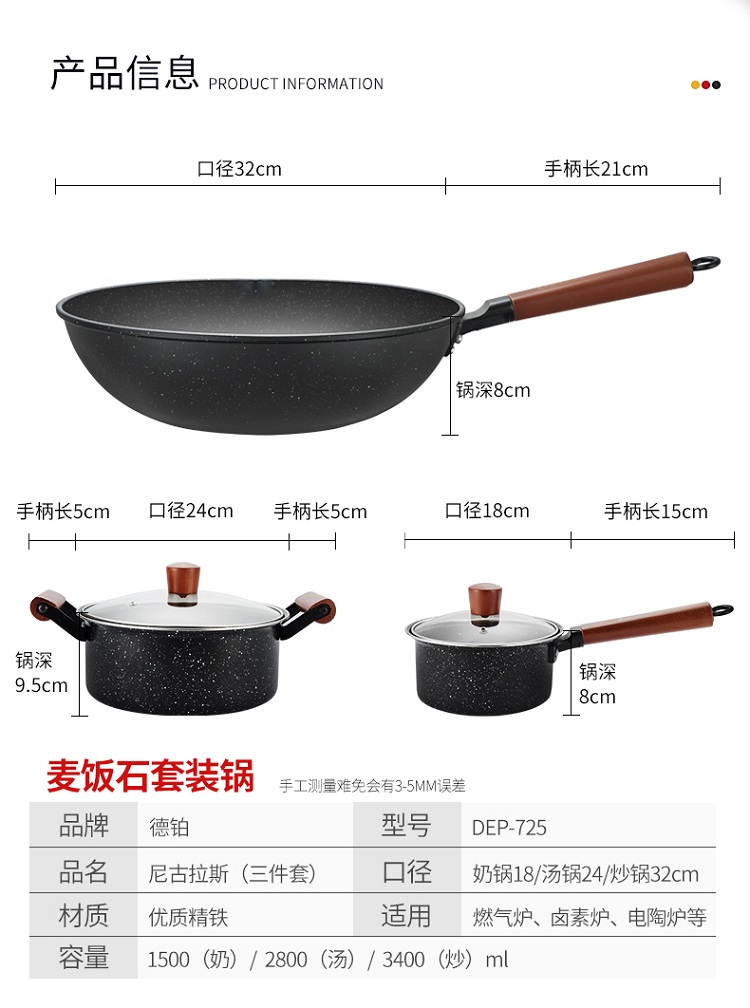德铂乐克尔Lecker幸福佳炒锅套装 麦饭石锅 汤锅煎锅三件套不粘锅家用组合
