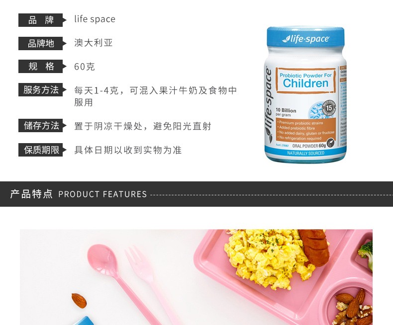 澳洲Life Space儿童益生菌粉 60g(3-12岁)