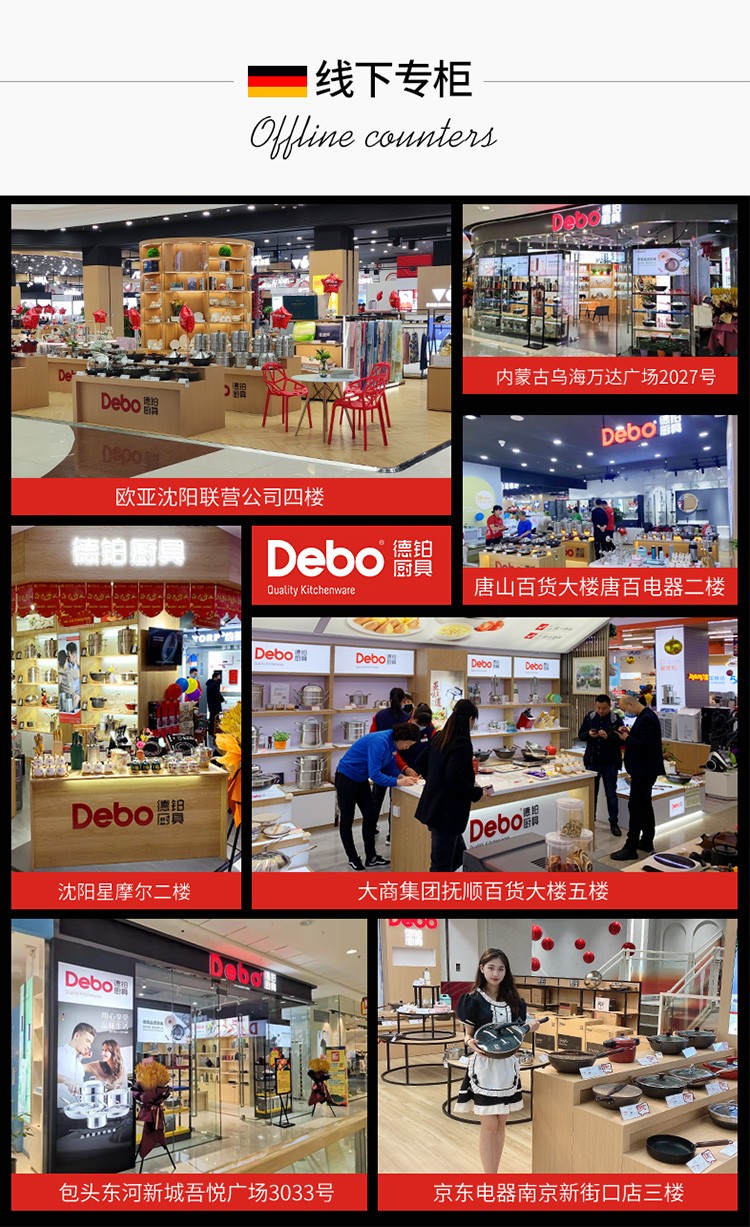 德铂(Debo)是一个源自德国的品牌,成立于1879年。该品牌以生产高级不锈钢厨具而闻名,以其高贵、典雅和时尚的设计风格著称。德铂的产品以优质的材料和德国先进制造工艺著称,每一件产品都经过精雕细琢,被誉为艺术品。德铂在2009年在中国广州建立了中国总部,并在中国市场迅速发展,其产品在各大商超设有线下专柜。此外,德铂还涉足其他领域,如数码产品,包括智能保温杯等。