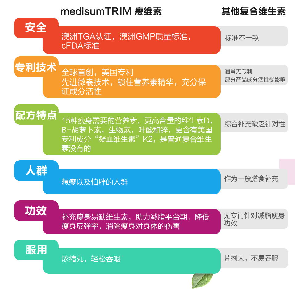 【核心卖点】 [二大patent,微囊技术] 全反式patent维生素K2,助力身材,patent号:2007271900 这个同类产品基本没有的;包衣patent成分活性加倍,patent号:CN1206267C;微囊技术,成分稳定性靶向性高 ✅ 5种身材管理维生素,高出其它1.4-3倍,助推代谢Patent维生素K2,维生素 D3,生物素,叶酸,β-胡萝卜素,锌 ✅ 6种头发皮肤营养素,调气色,保发际线 维生素E,烟酰胺,富马酸亚铁,,叶酸,维生素C,β-胡萝卜素 ✅ 8种B族维生素,稳情绪 维生素 B7,维生素 B12,核黄素,泛酸钙,盐酸吡哆醇等 ✅ 5种自护力营养素,加固防护屏障 维生素C,维生素 D,β-胡萝卜素,维生素E,B族 【浓缩小粒】小小一粒,吃起来方便,不卡喉,一瓶吃60天