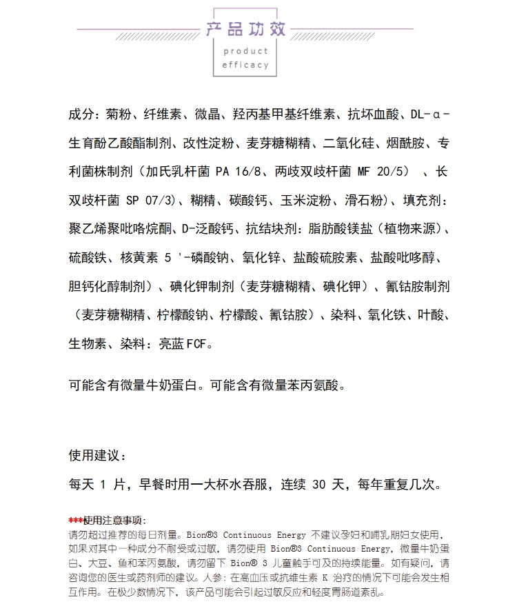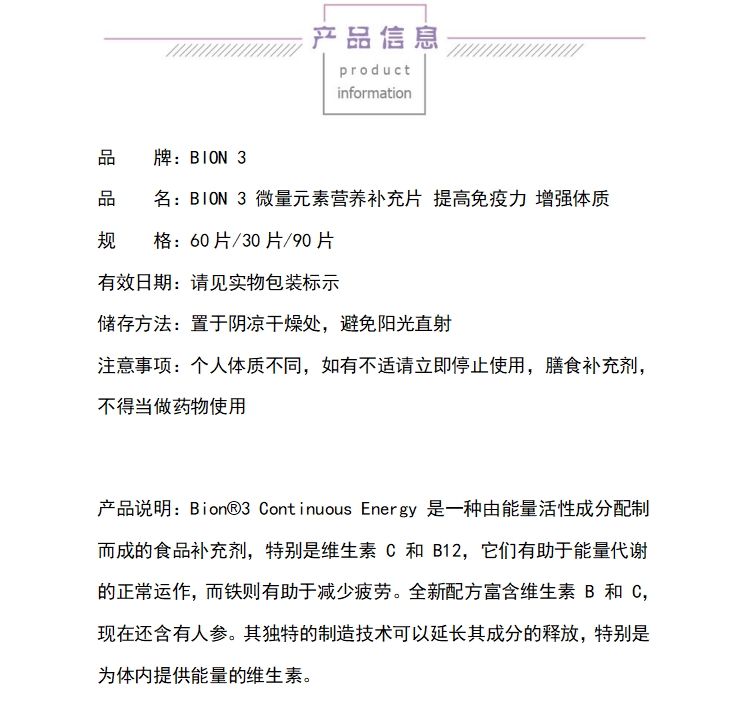 【法国直邮】BION 3 复合维生素营养补充片 提高免疫力 缓解疲劳 - 30片/60 片/90片