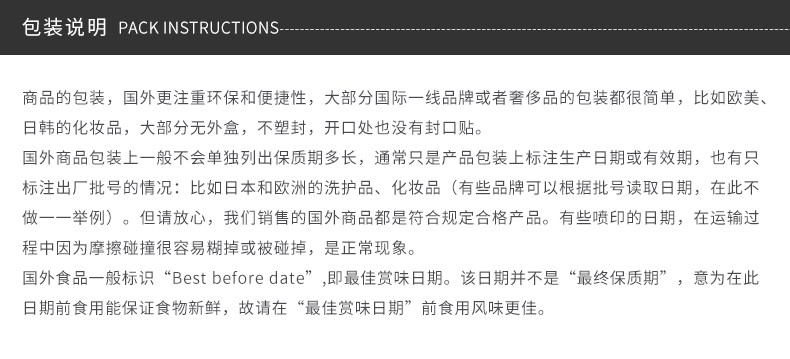 3.跨境商品我们承诺所传身份信息只用于办理跨境商品的清关手续,不作他途使用,其他任何人均无法查看。