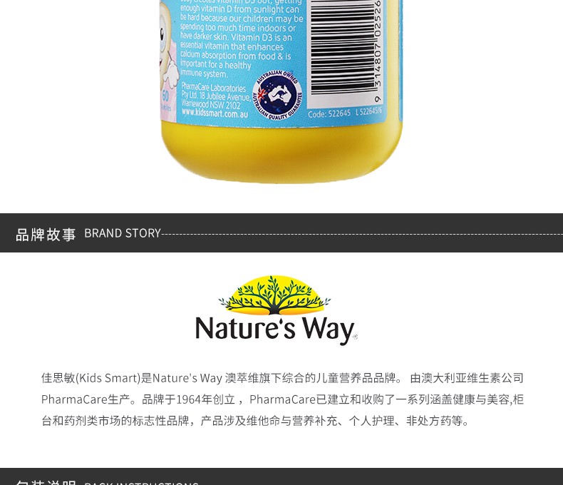 Nature’sWay品牌成立于1969年,品牌Nature’sWay主营的产品有:婴幼儿营养品,儿童鱼油,佳思敏,婴儿鱼油,婴儿钙片,宝宝儿童补钙,