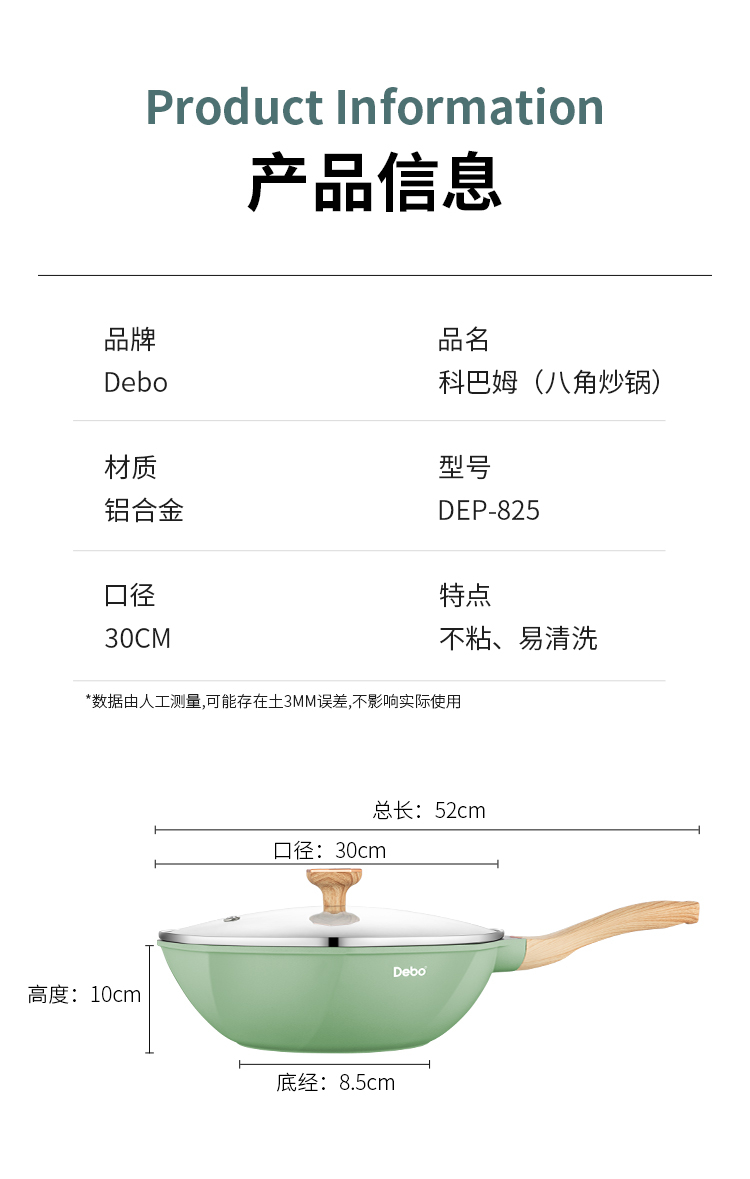 【新品】德铂debo 24CM欧岱拉无涂层炒锅炒菜锅 无涂层 精巧加深