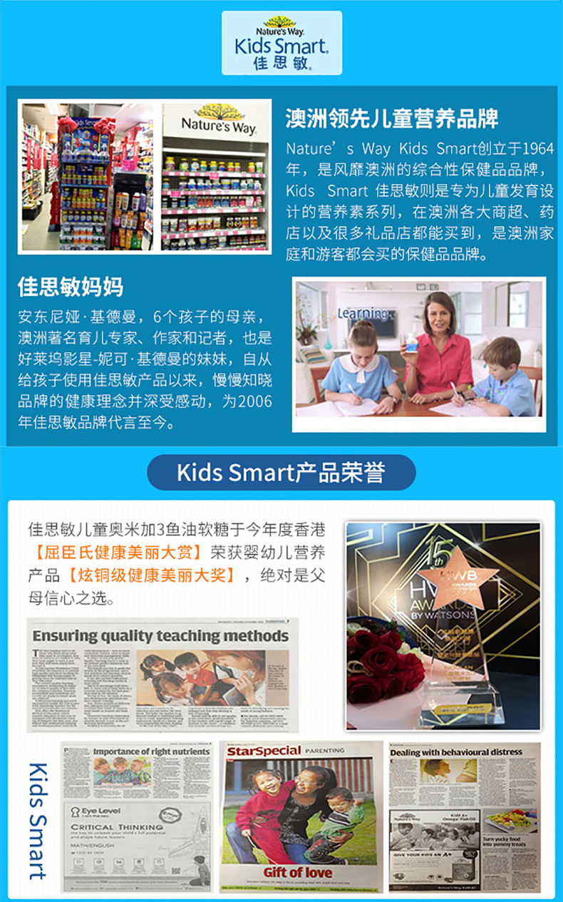 Nature’sWay品牌成立于1969年,品牌Nature’sWay主营的产品有:婴幼儿营养品,儿童鱼油,佳思敏,婴儿鱼油,婴儿钙片,宝宝儿童补钙,